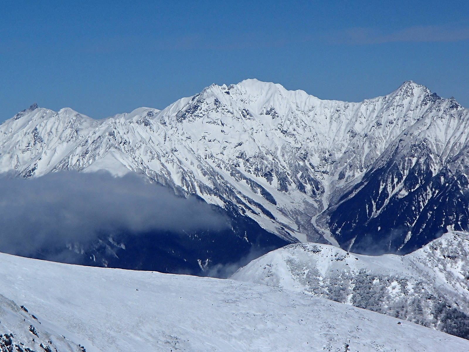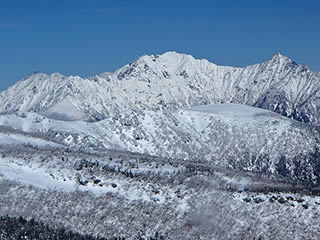 北アルプス槍穂高も見えてきました。斜面の新雪がきらきら光っています。