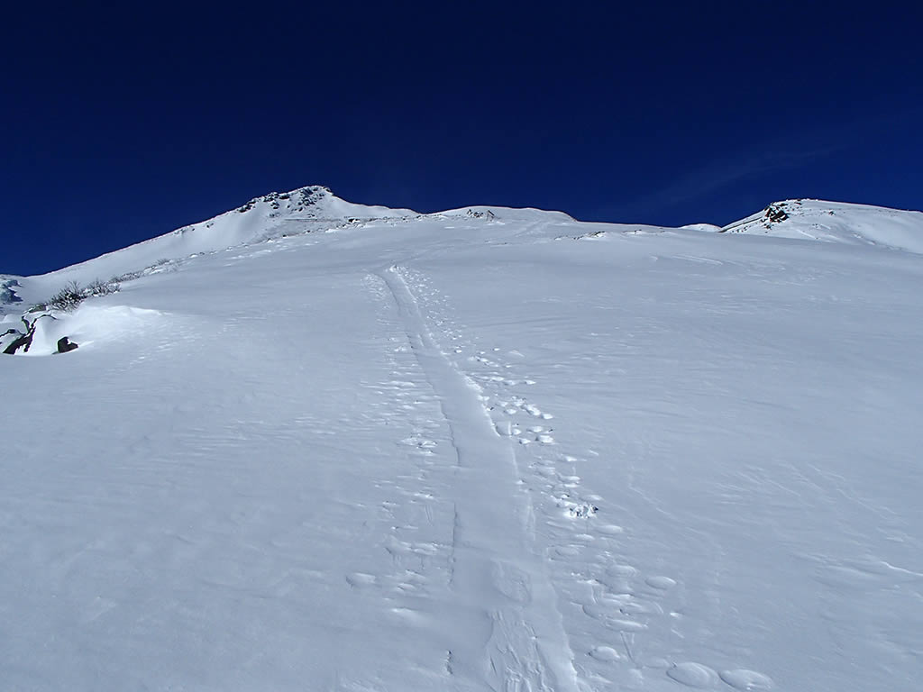 位ヶ原に登る急斜面はまだ藪藪ですが、上り下りとも通過は出来ます。積雪があと2mは欲しいです。