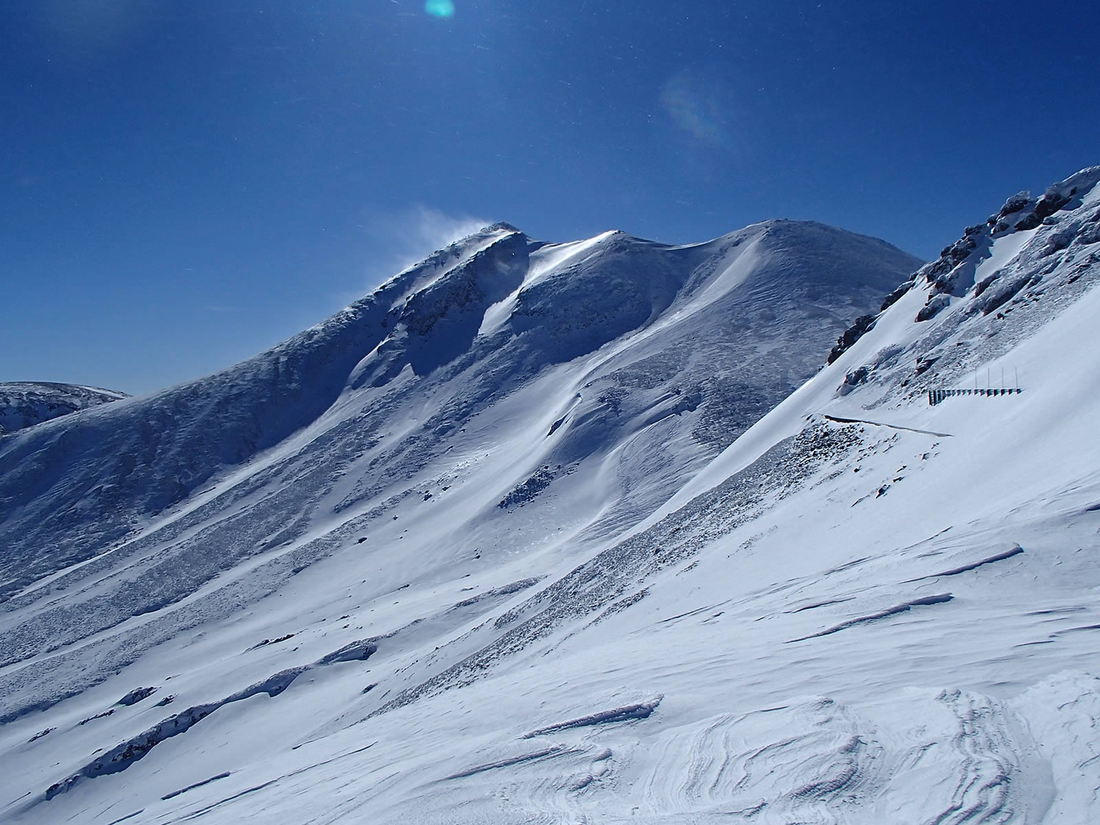 剣ヶ峰。雪は着いているように見えますが、まだ滑るには早い感じです。