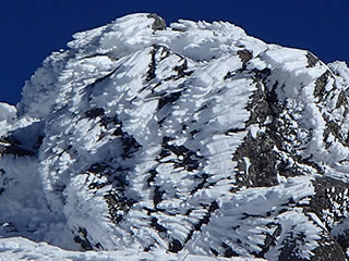 なだらかになると新雪が風で飛ばされて再びがりがり(^^;。