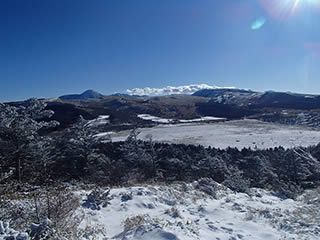 昨夜の降雪でどれくらい雪が積もったかなと楽しみに近くの霧ヶ峰鷲ヶ峰に出かけてきました。雪が多ければBCとも思ったのですが、さすがに駐車場でも10cmほどでしたので、スキーは諦めて(^^;、歩いて登りました。