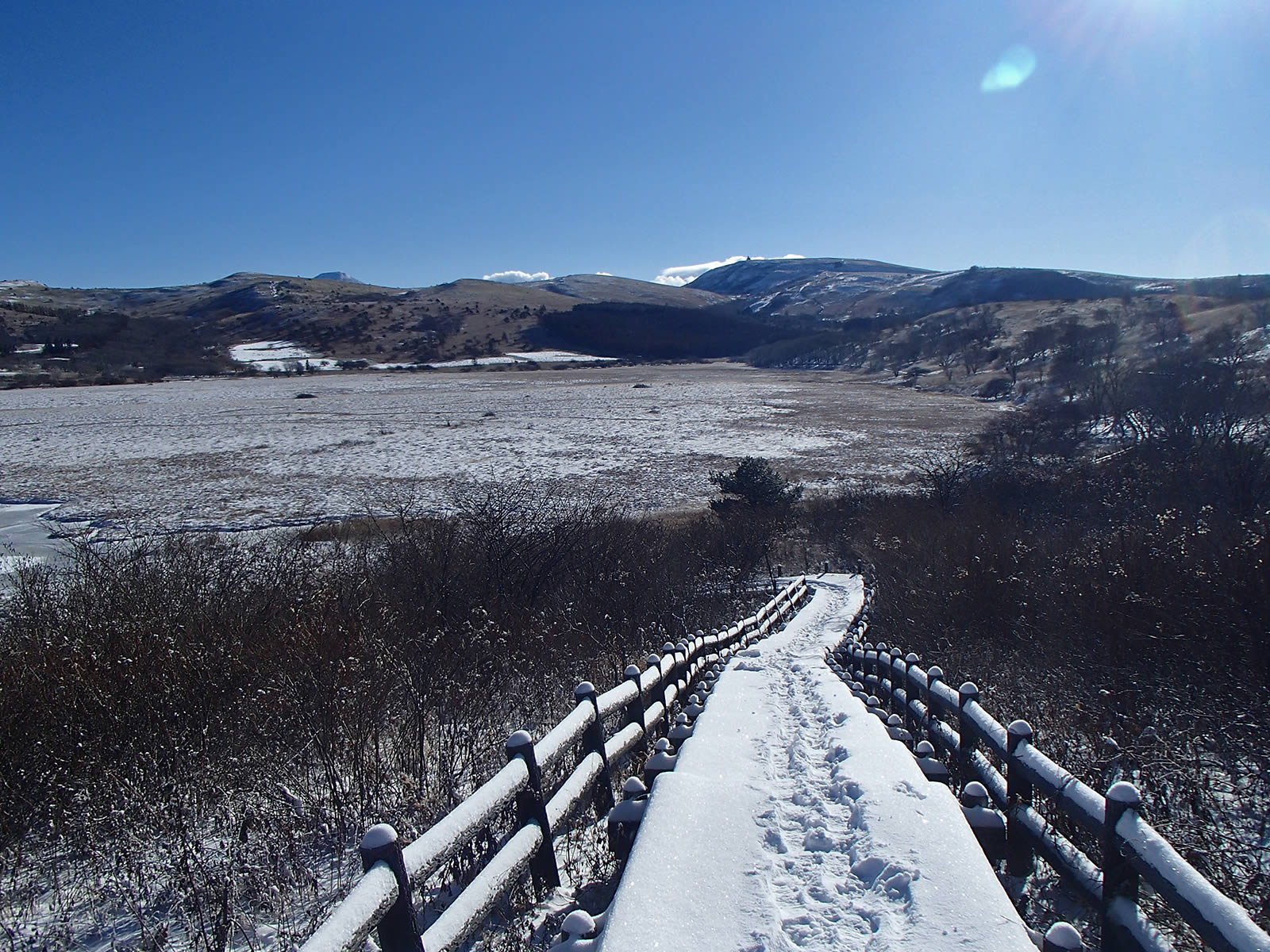 自宅を8時15分に出発し、霧ヶ峰に向かいます。そして8時55分、八島湿原駐車場に到着。駐車場の雪は10cmほどでした。