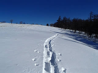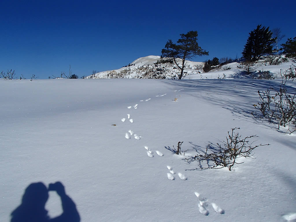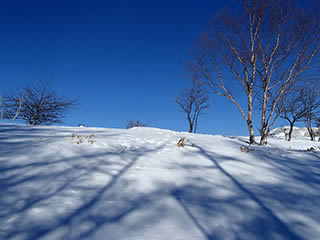 15頭ほどのシカの群れを見かけましたが、今回見かけたシカはこれだけでした。今年はこの辺りは雪が少なめですので、稜線まで上がってこなくても食事が出来るのでしょう。