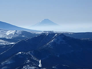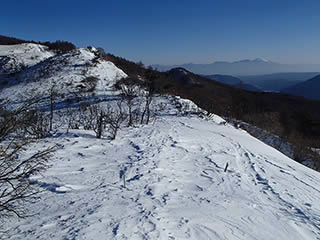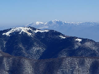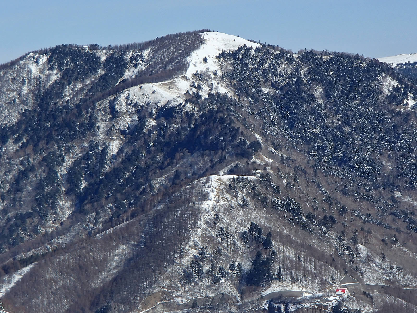 三峰山をズーム。ここから見える稜線は雪が少なくちょっと心配になります。