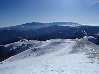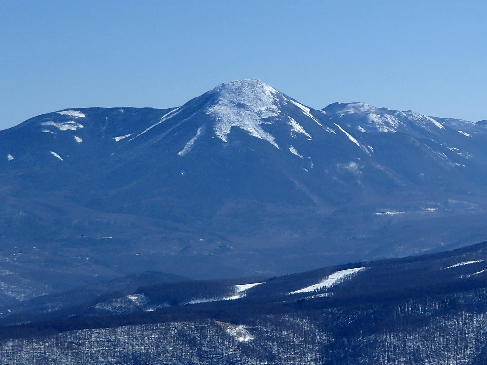 権現岳。手前に車山。沢渡スキー場跡斜面も雪がそれなりに付いているようにも見えますね。