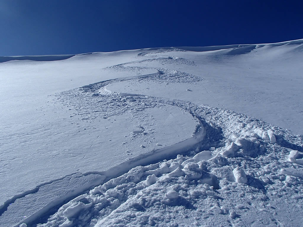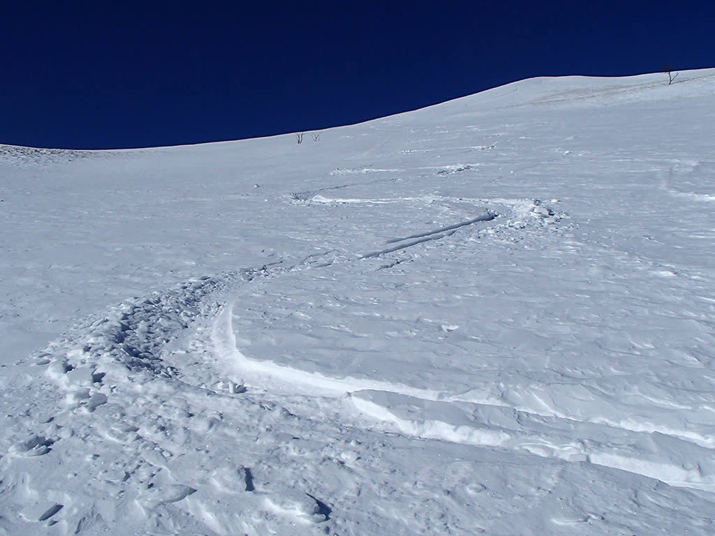 途中で滑るルートをチェンジします。滑り降りた斜面を振り返って。
