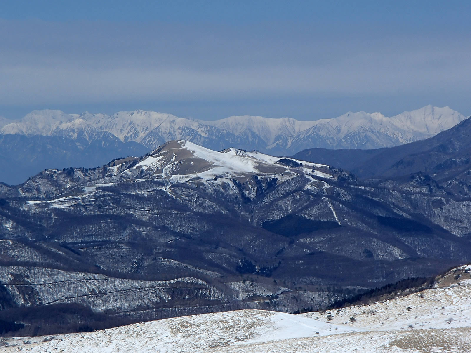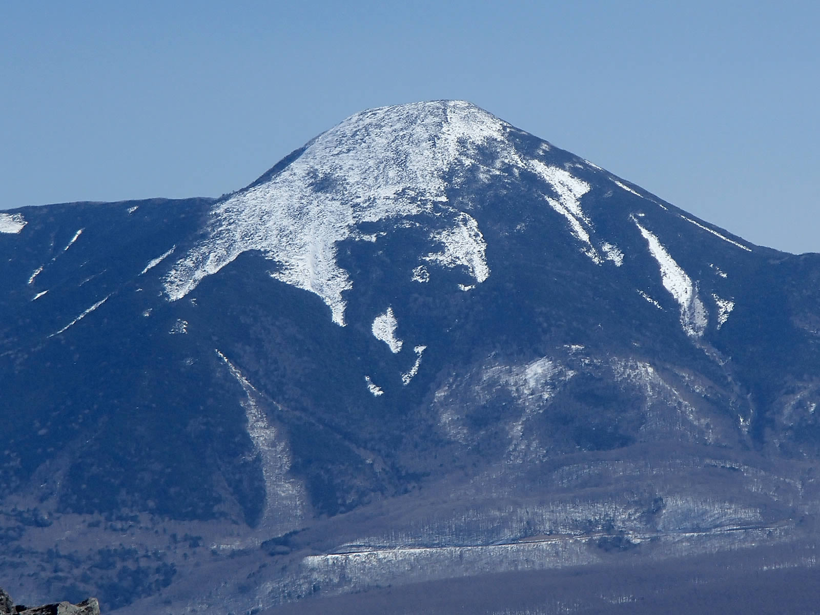 浅間山方面。手前の殿城山は、ここから見える斜面はほとんど雪がありませんね。