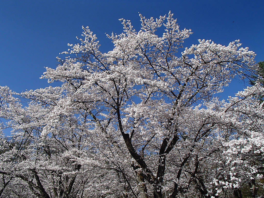 蓼科に上がっていくと、蓼科湖の手前の左側に満開の桜が見えてきます。ここが聖光寺です。ここだけ桜がとりわけ多いので気がつかずに通り過ぎることは無いと思います。日曜日の朝ということで停まっている車も数台程度でしたが、この日は桜祭りも開催されると言うことですので、昼間は大賑わいなことと思います。