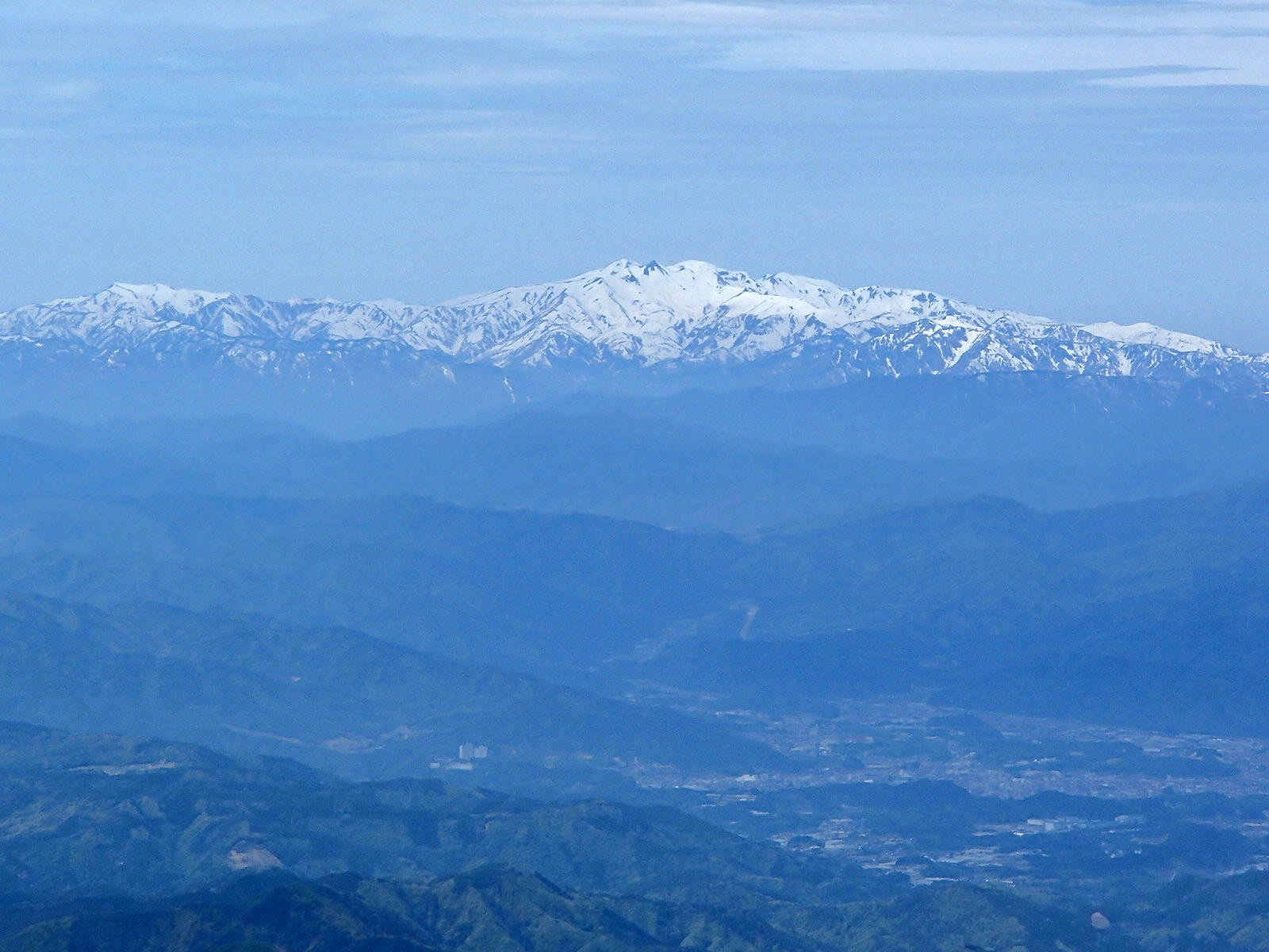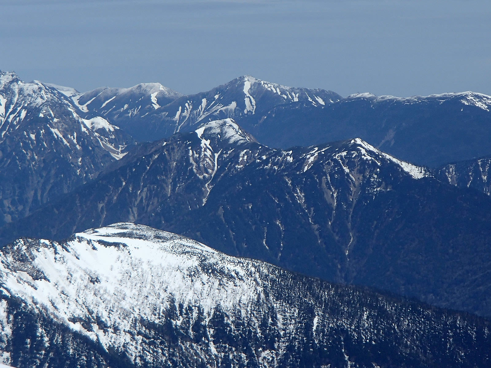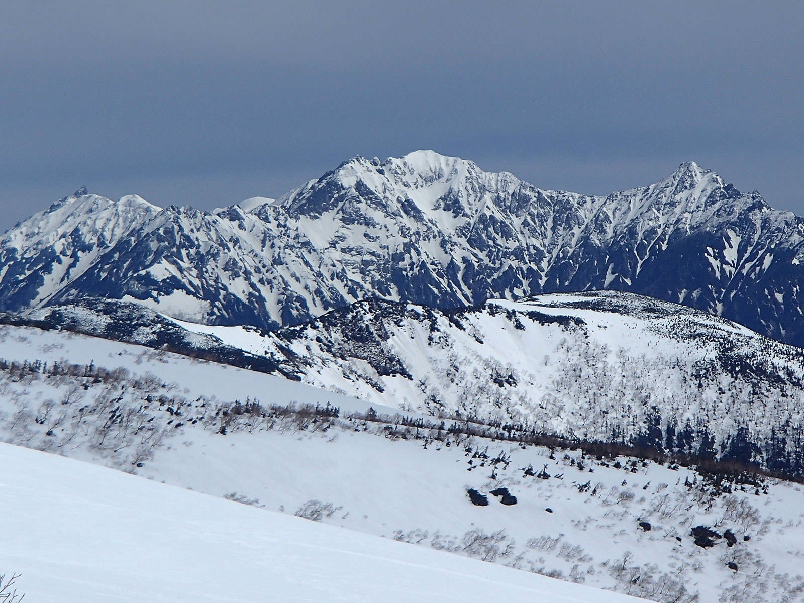 摩利支天岳、富士見岳。富士見沢は盛大に雪崩れていますね(^^;。