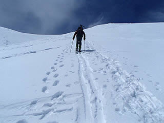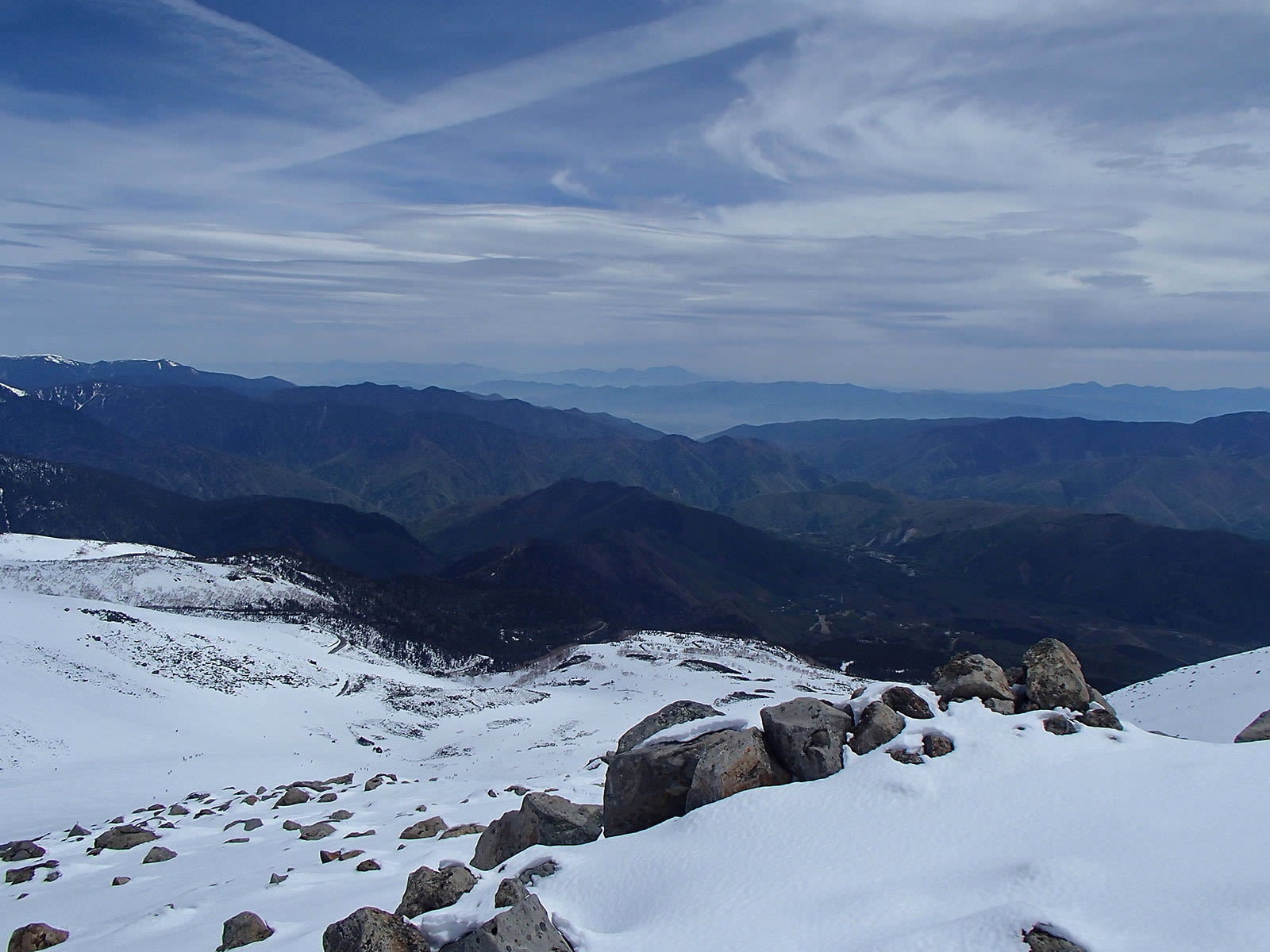 稜線では最近の積雪が20cmほどもあり、しかも日差しと高い気温のおかげで柔らかいザラメ状の雪になっていて、まるでパウダーを滑るかのように気持ち良く滑ることが出来ました。