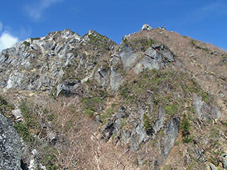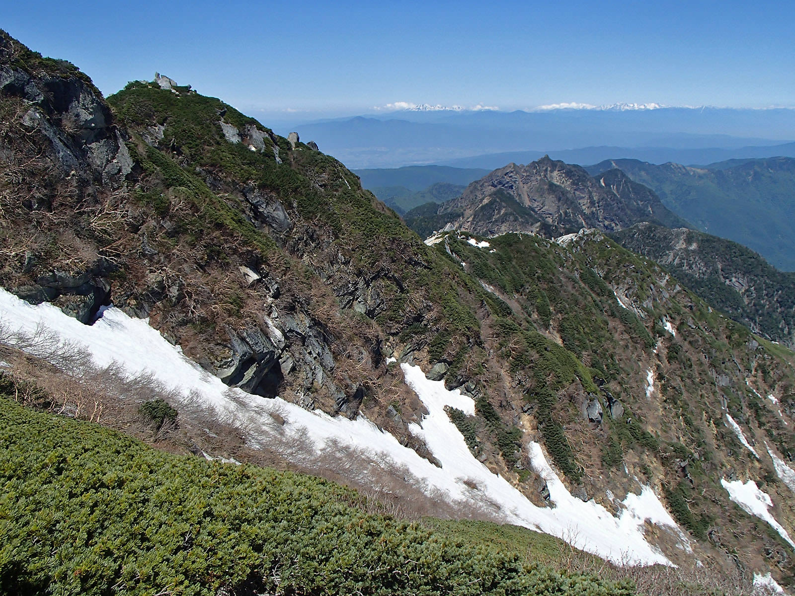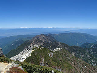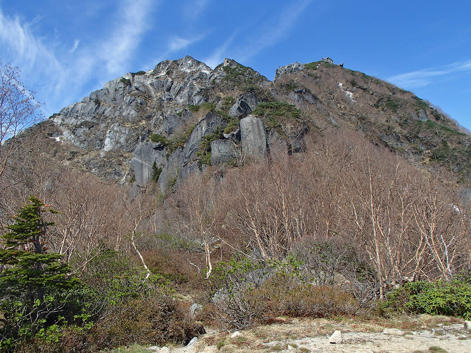 7時25分、五合目小屋跡から甲斐駒方面を見上げます。まだまだ遙か彼方(^^;。