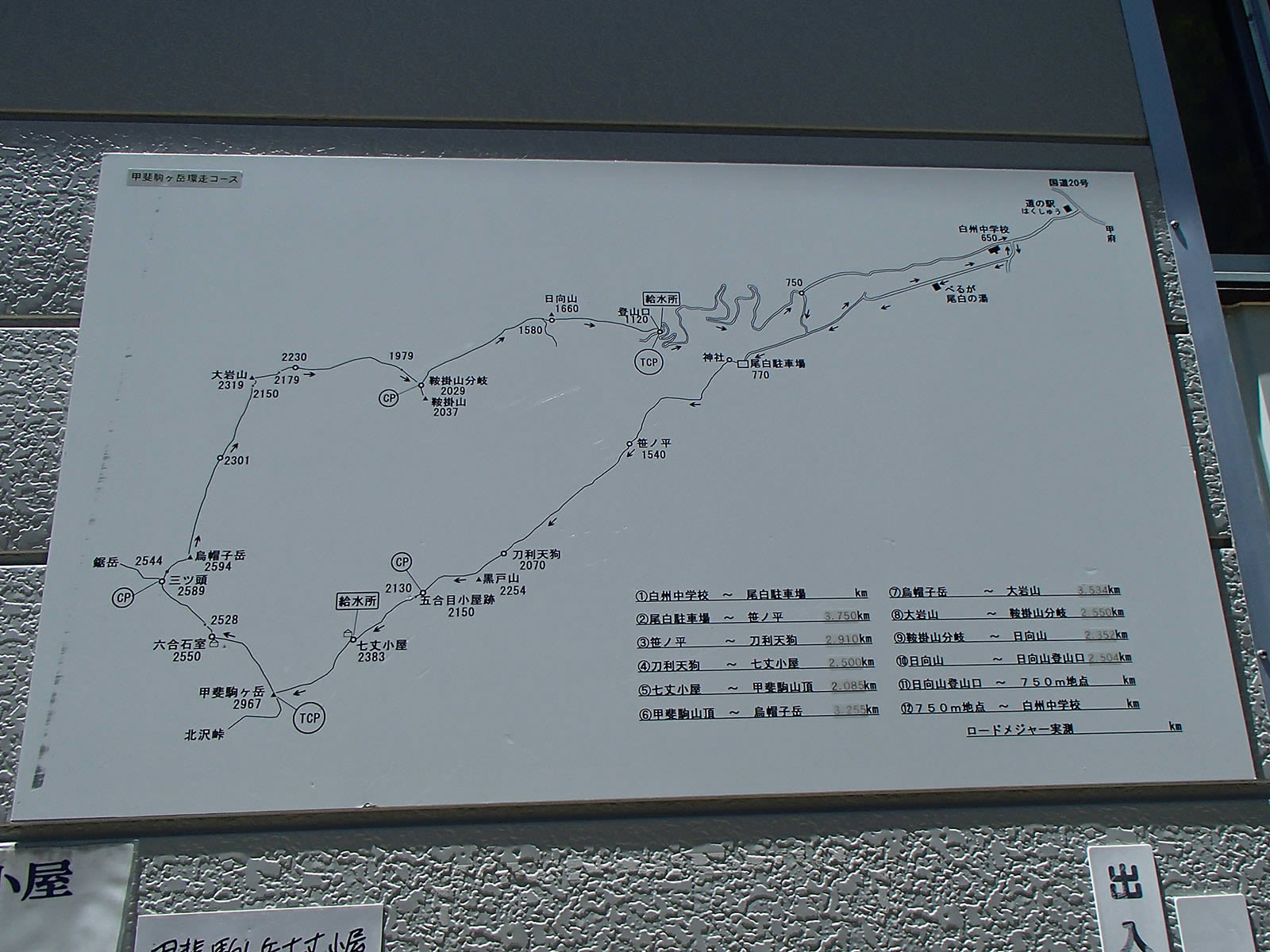 コース:尾白川渓谷駐車場→七丈小屋→甲斐駒ヶ岳→七丈小屋→尾白川渓谷駐車場