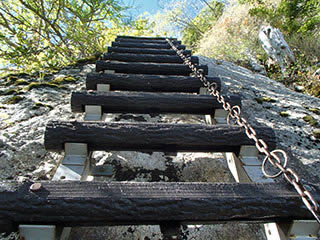 ほぼ垂直の鎖場。岩にステップが掘られていますが、少し離れているのがきついです。