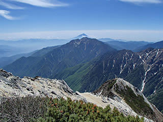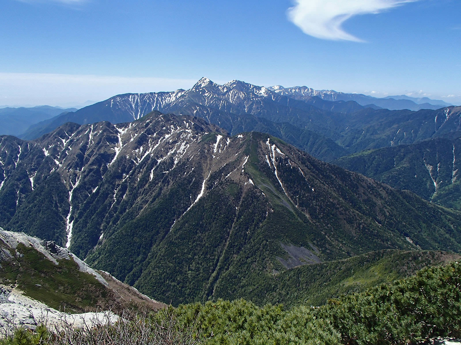 槍穂高、常念岳。左側にちょこんと見えるのは多分笠岳。