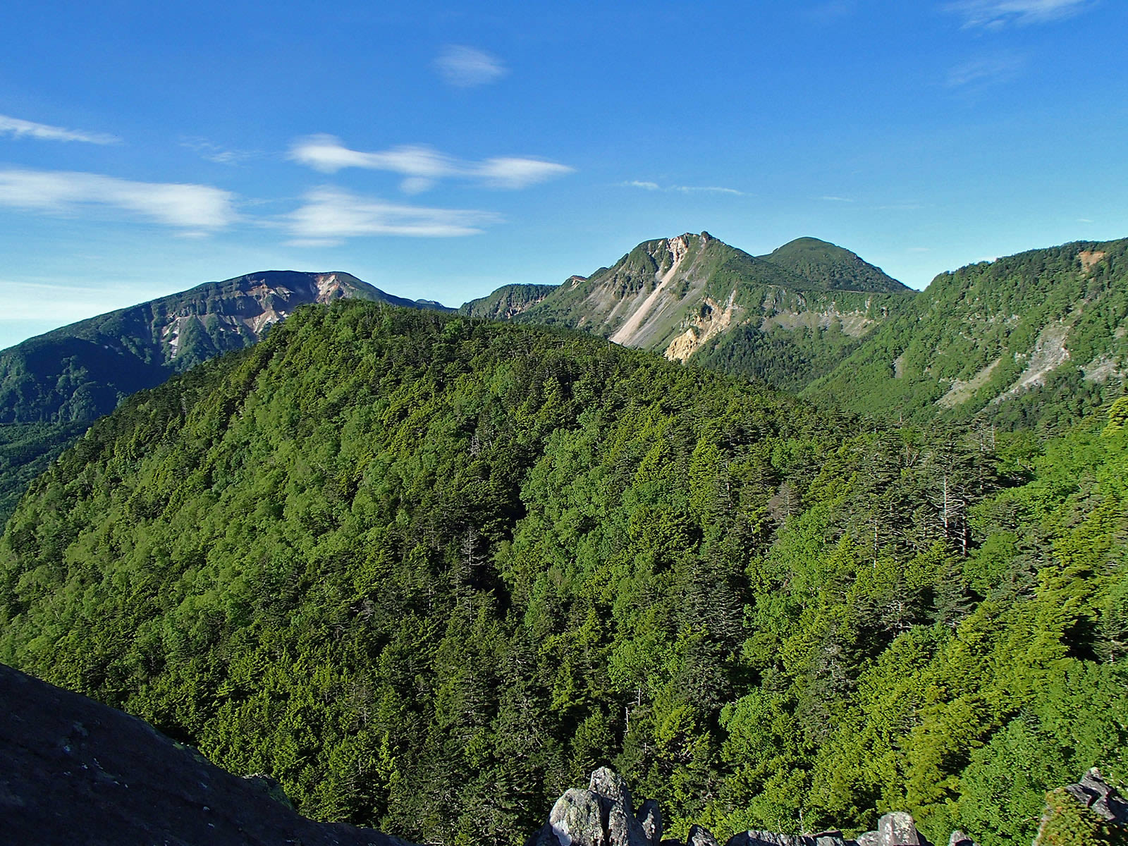 硫黄岳、天狗岳。手前はこれから向かう稲子岳。