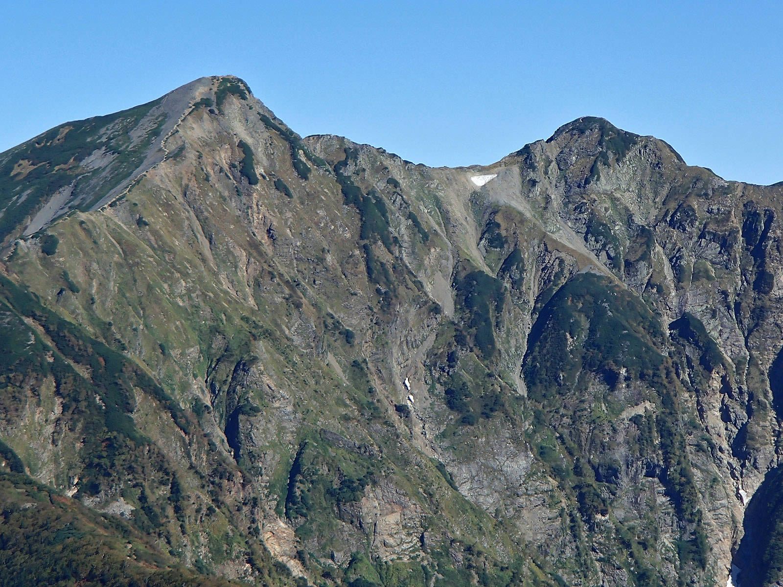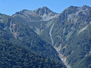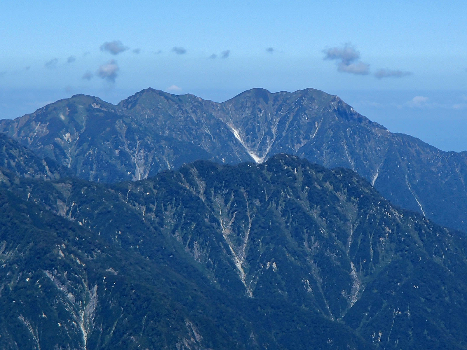 振り向くと蓮華岳の左肩に槍が見えてきました。
