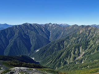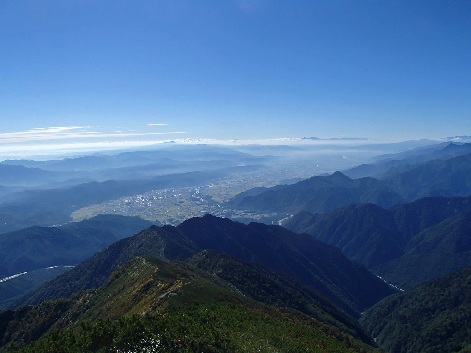 では再びここからの大展望を爺ヶ岳南峰側から右回りでご紹介。