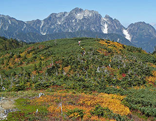平坦なトラバースになってからは紅葉が目に付くようになります。ただしこの辺りの見頃はまだまだ先です。