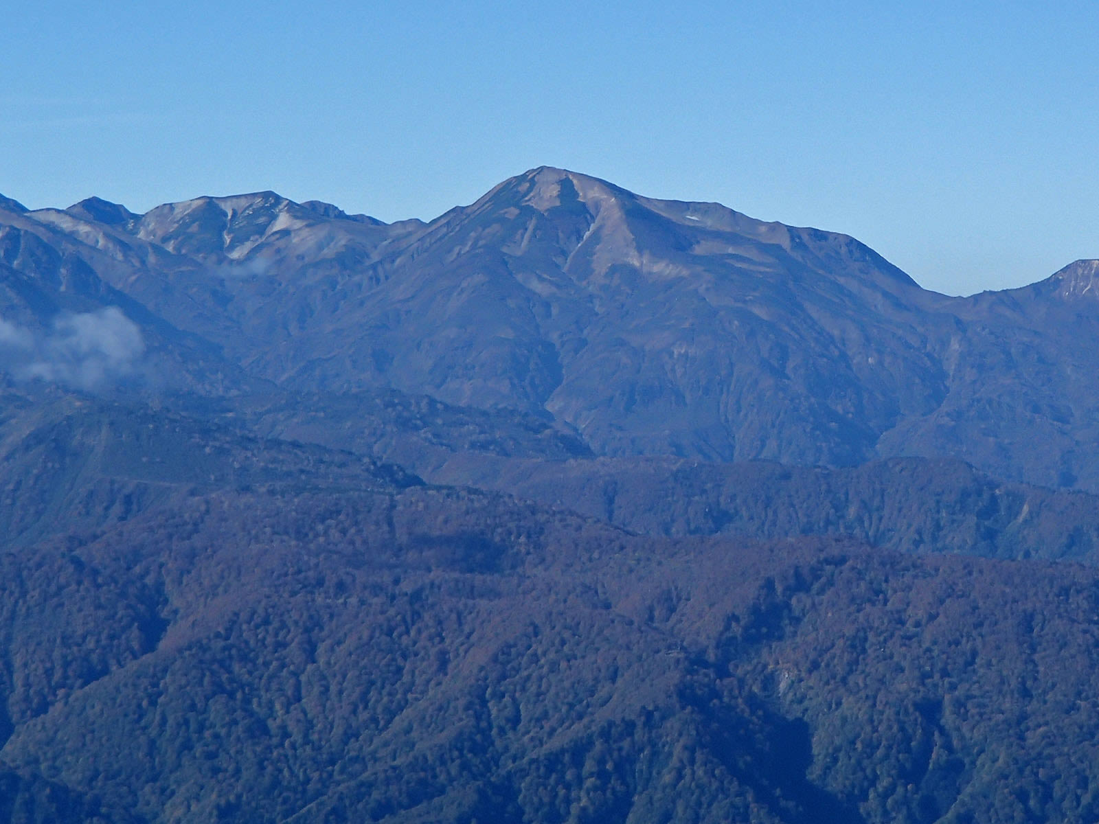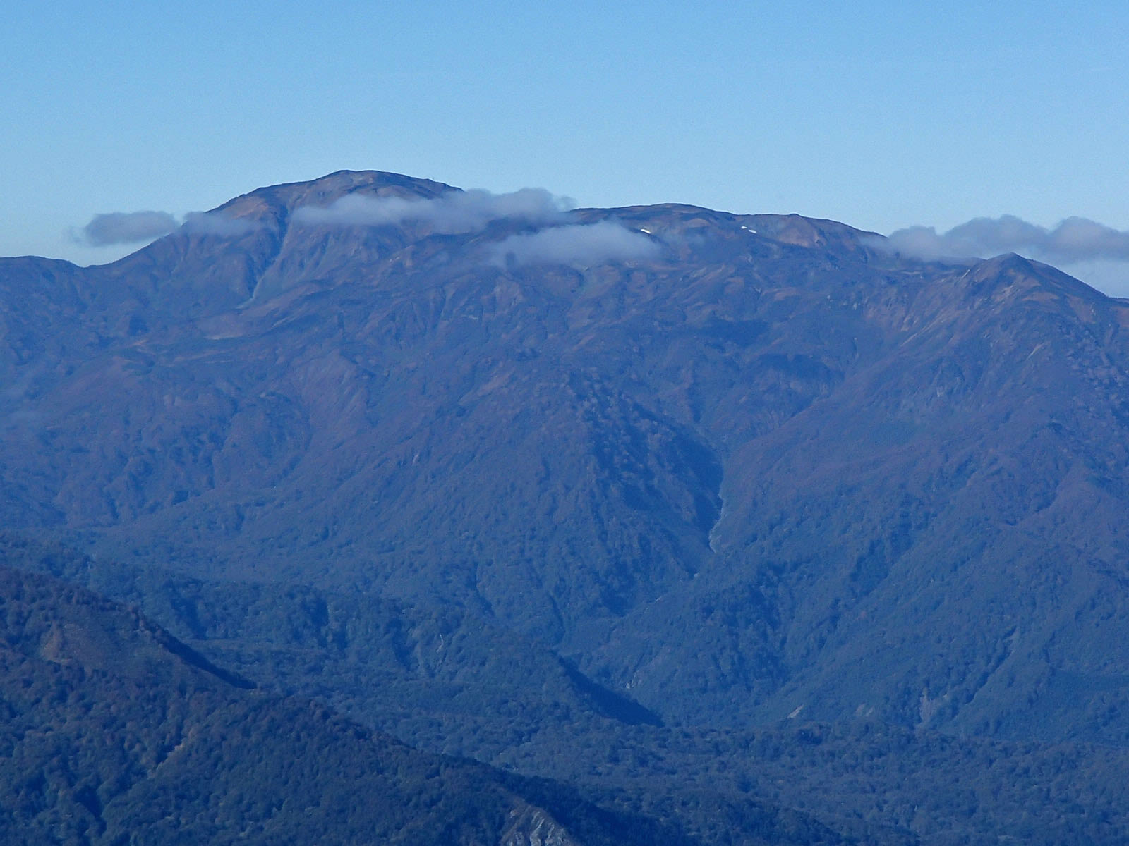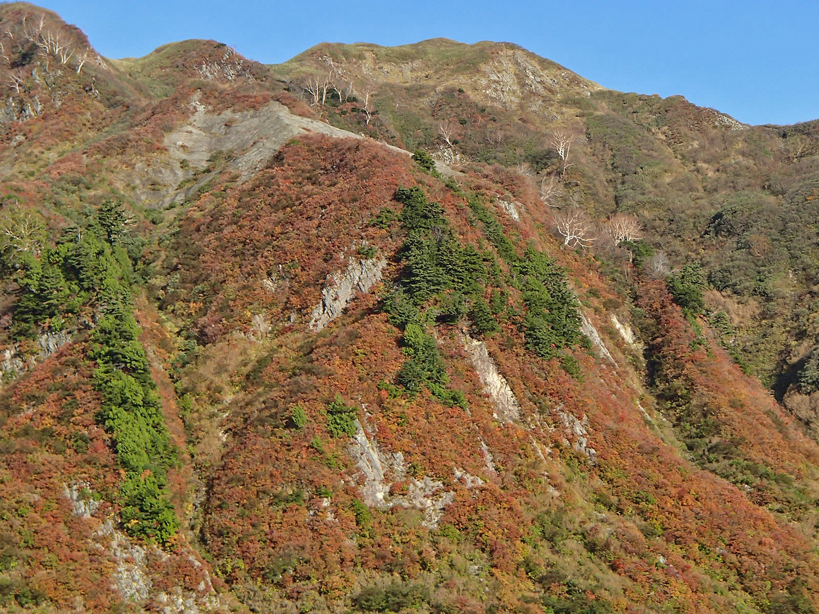 布団菱と紅葉。山頂は布団菱に隠れています。