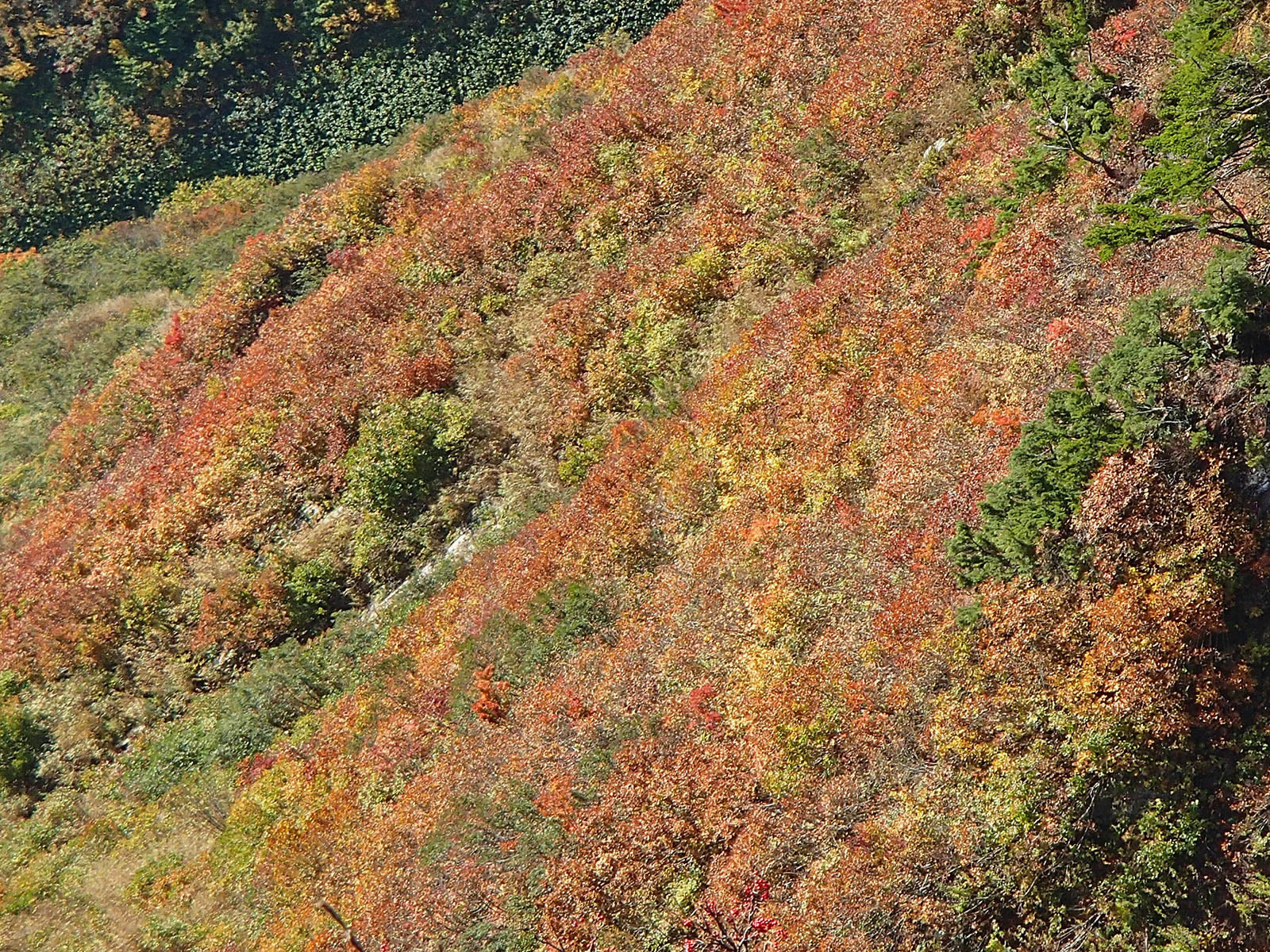 展望台に到着。斜面の中腹から下の紅葉が見頃です。