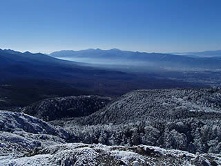ロープウェイ方面。中央アルプス、御嶽山もきれいに見えています。