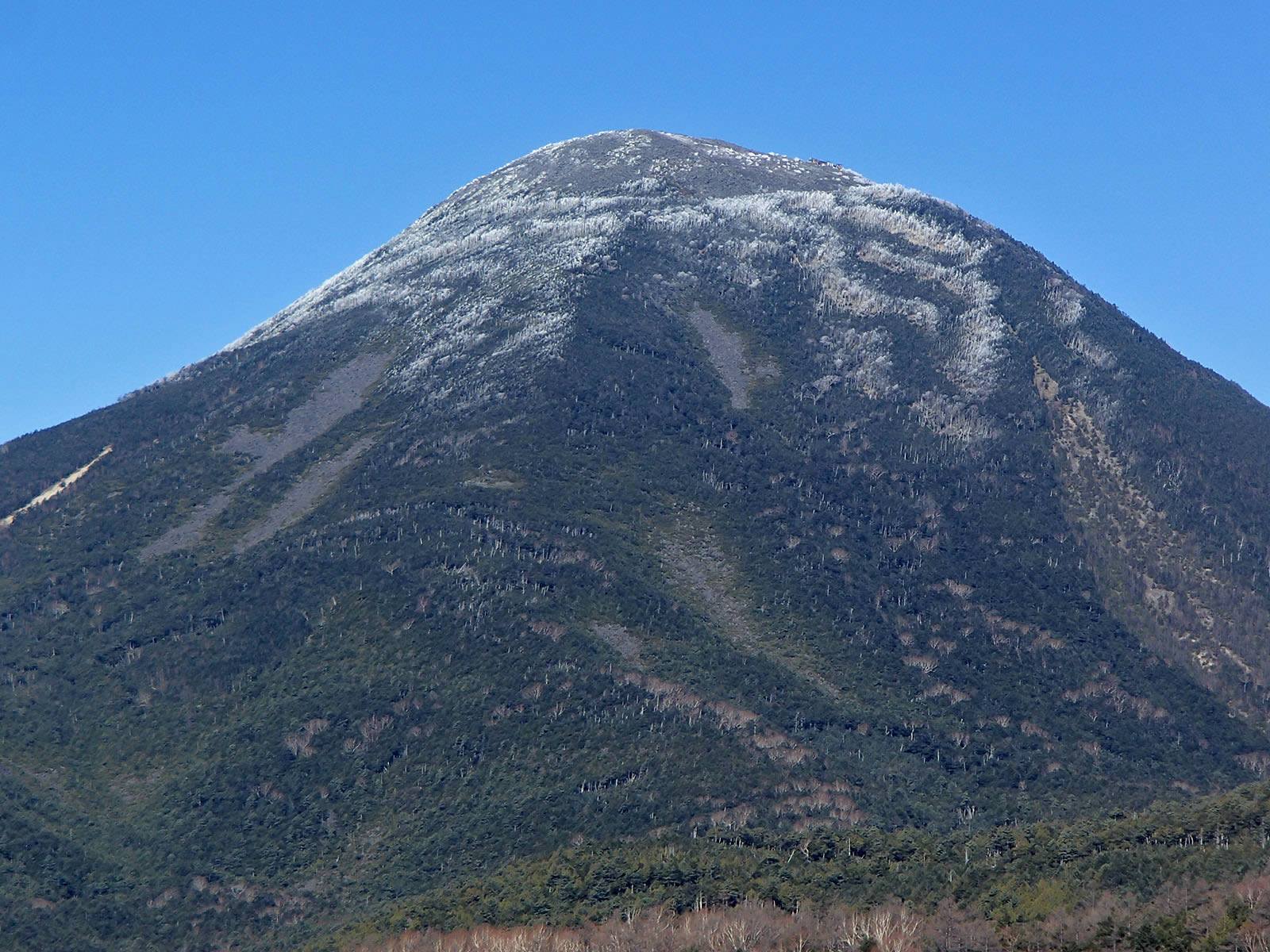縞枯山斜面をズーム。まるで降雪後の写真のよう。