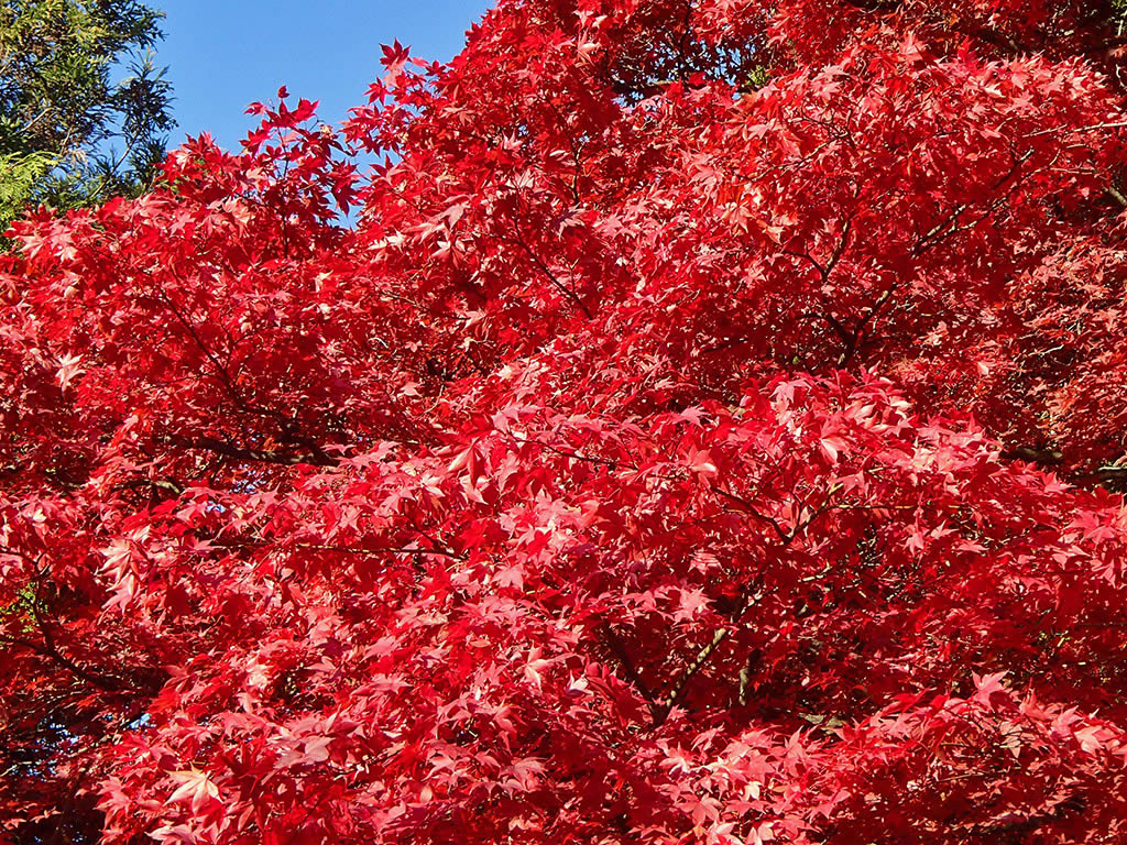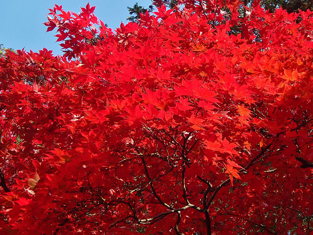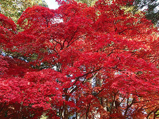 なおここを訪れるなら午後をお勧めします。楓の枝が主に西側に張りだしていますので、西日に照らされて紅葉が真っ赤に輝きます。