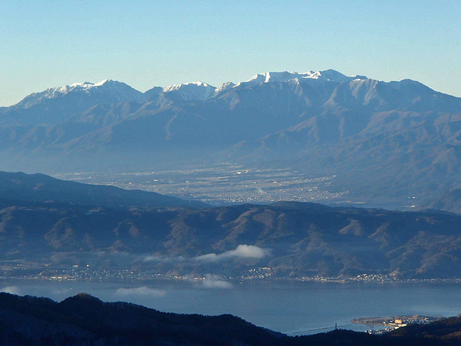 自宅を6時に出発し、八島湿原に向かいます。次の写真は途中で眺めた富士山、南アルプス。