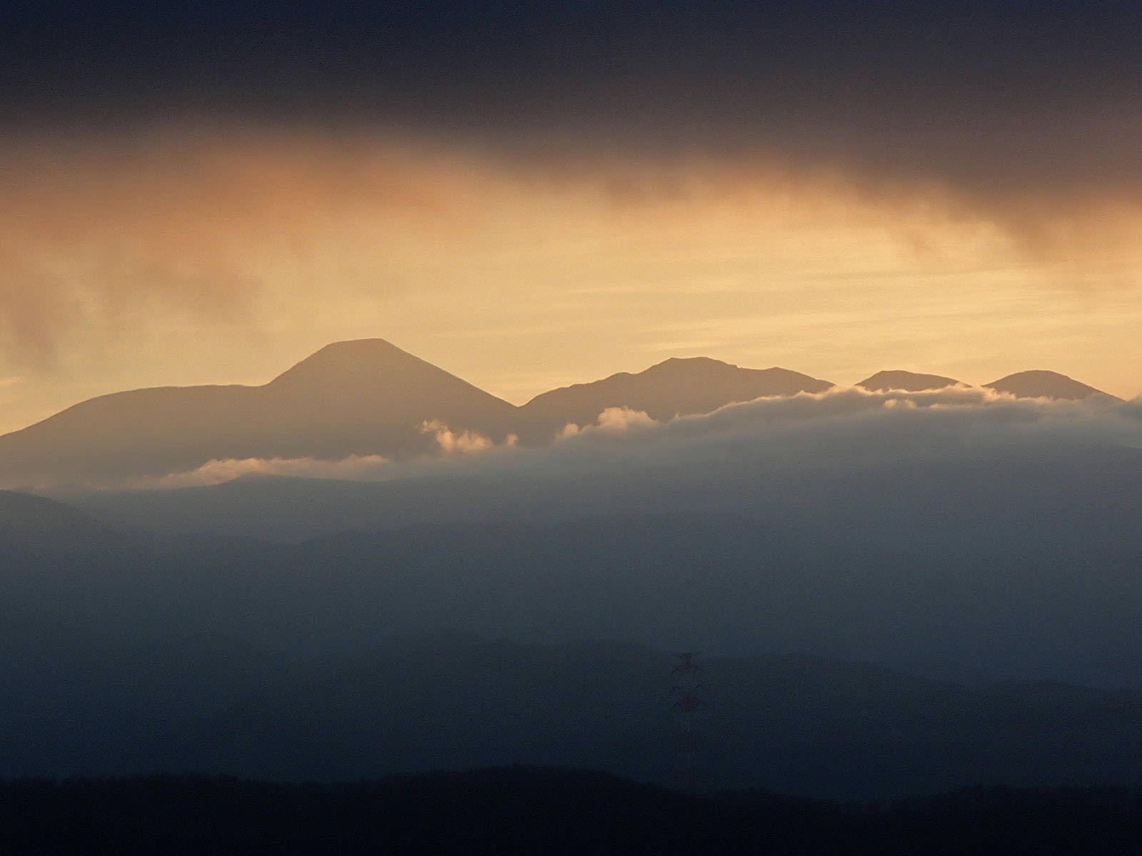 6時50分、八ヶ岳から陽が昇ってきました。やっぱり上のガスが邪魔。
