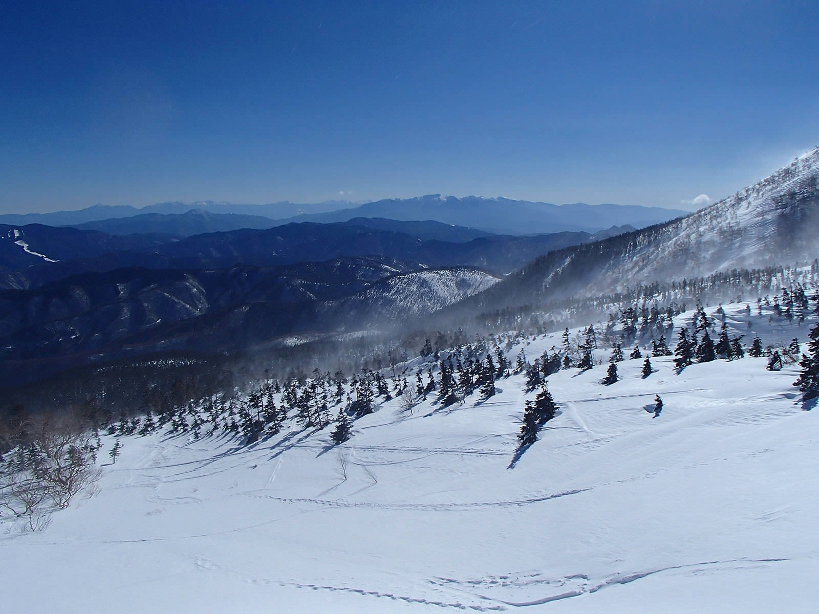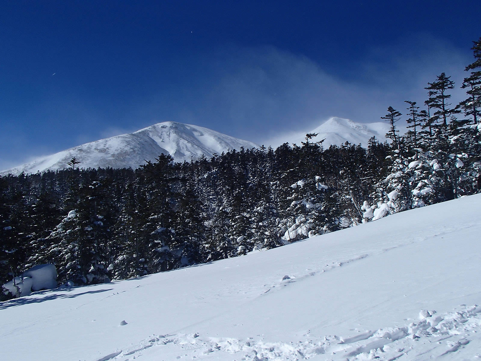 摩利支天岳、富士見岳。滑り台、富士見岳の雪の状態が気になります。