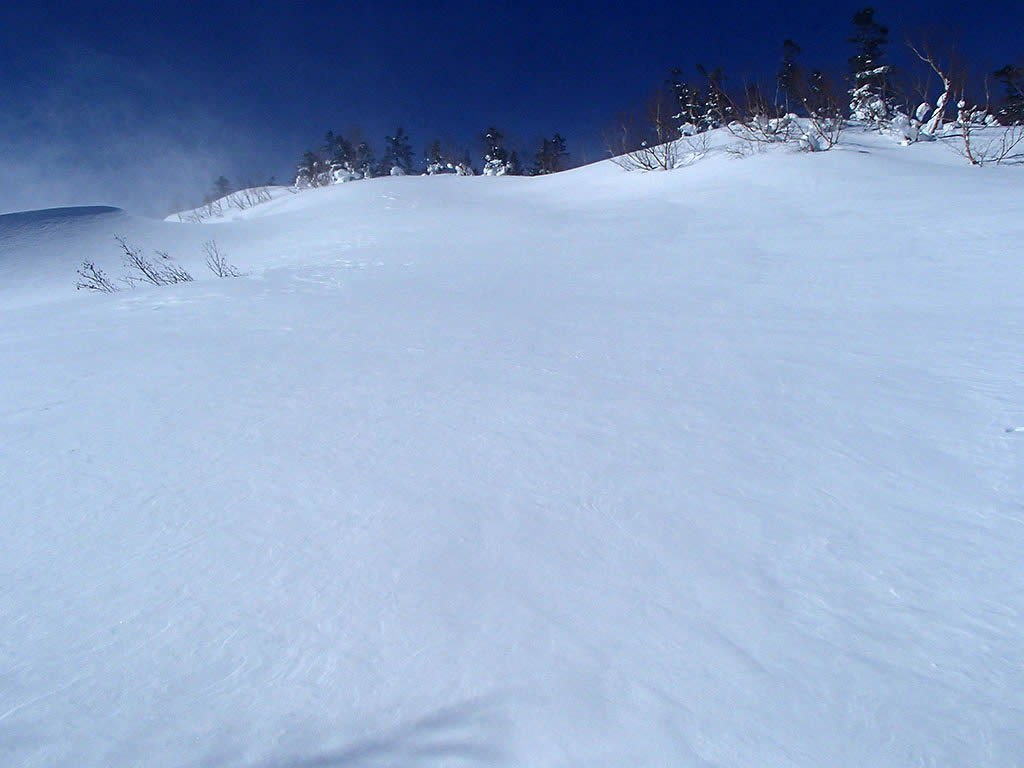 こちら側は斜面が風にパックされている感じです。