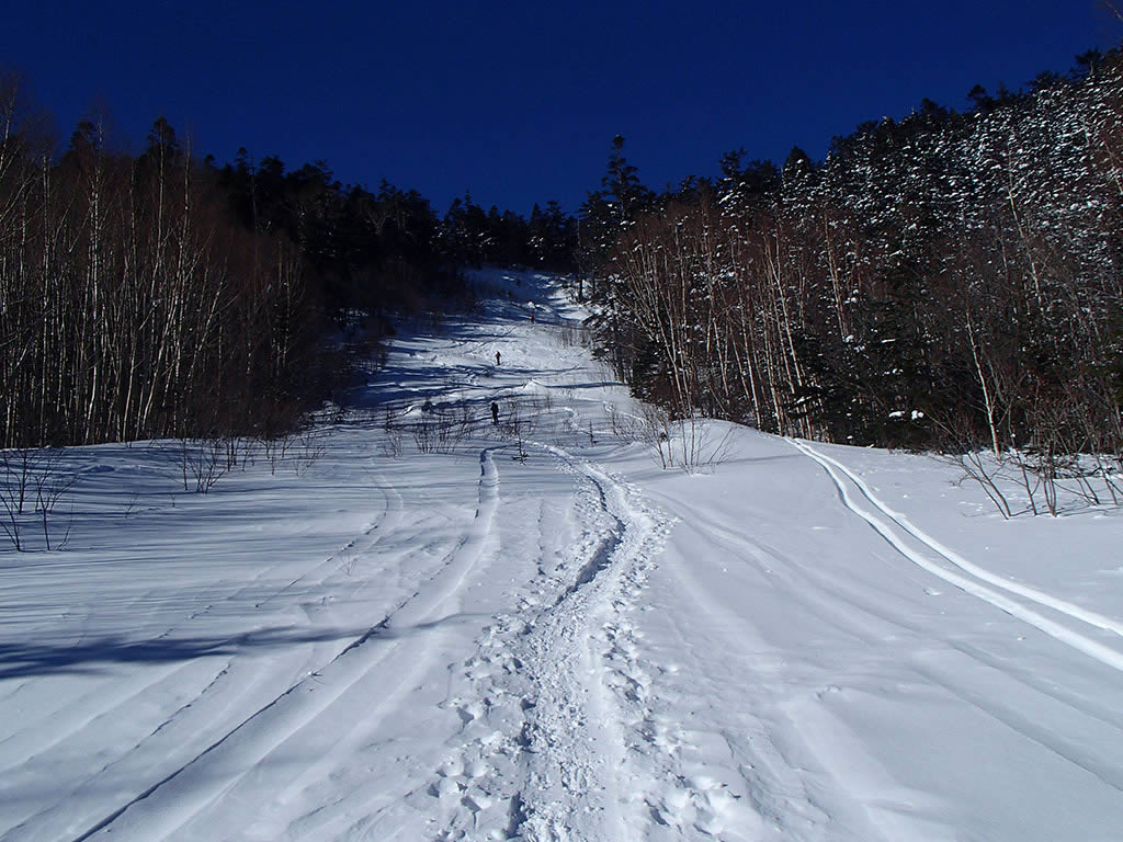 位ヶ原に登る急斜面。ここも多少藪が見えていますが、滑るには問題ありません。