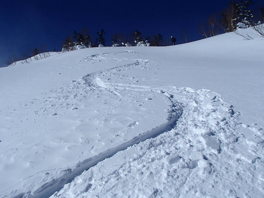 スキー場手前の斜面の新雪も気持ち良かったです。