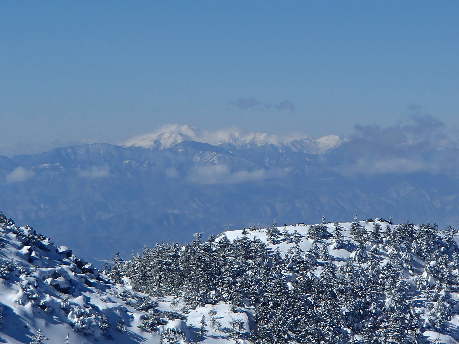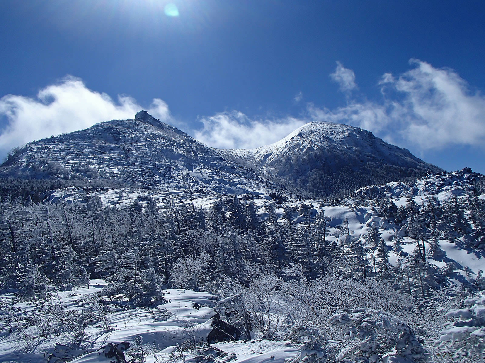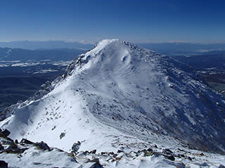 蓼科山。上部の積雪は多いと思うけれど、下まで滑り降りれるかどうか。