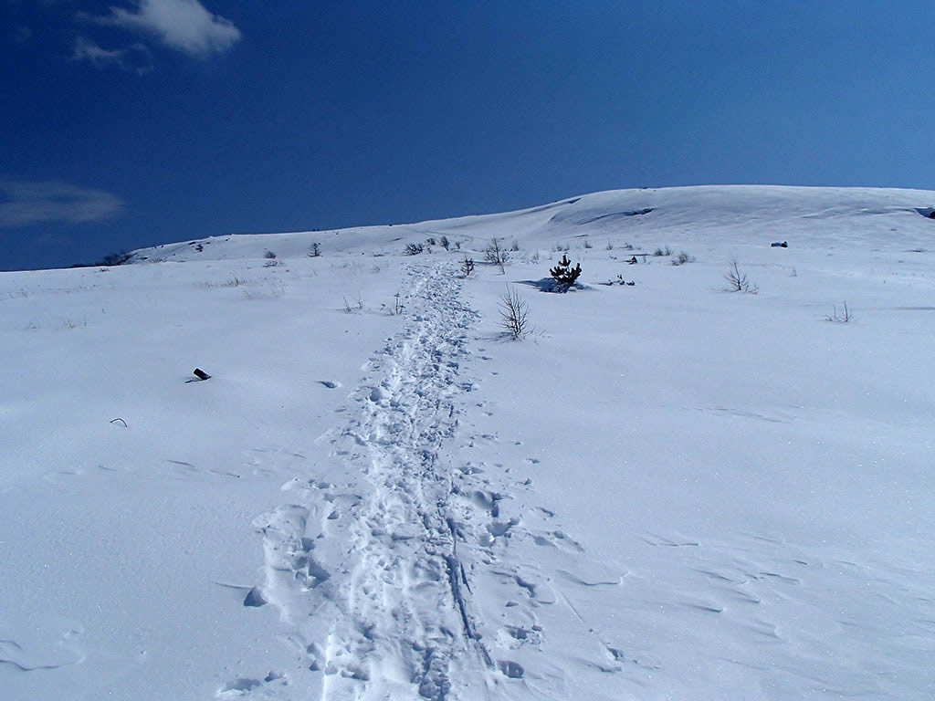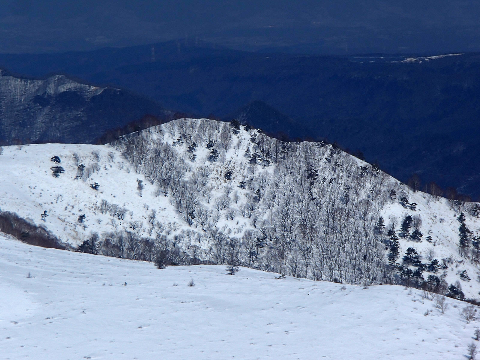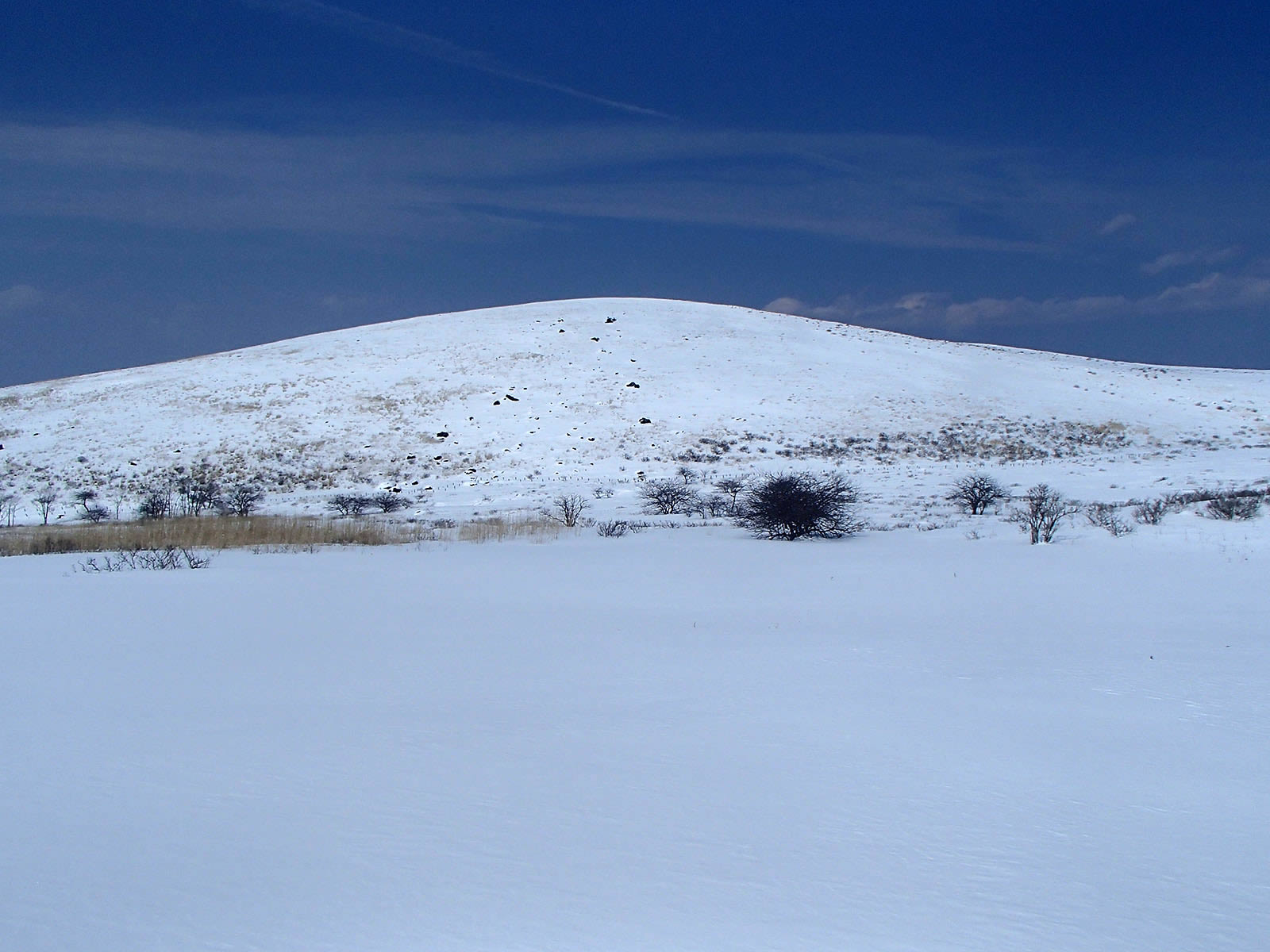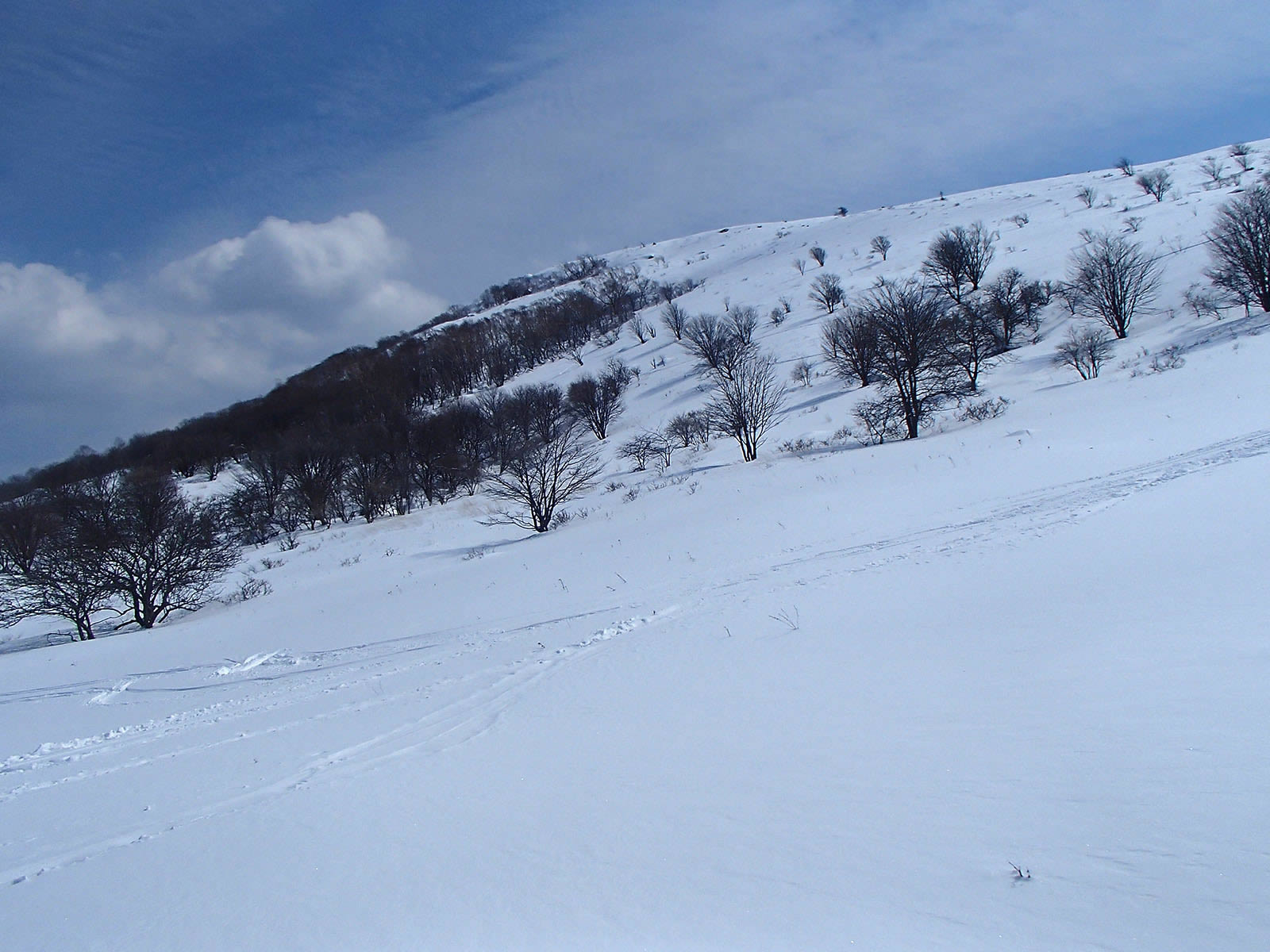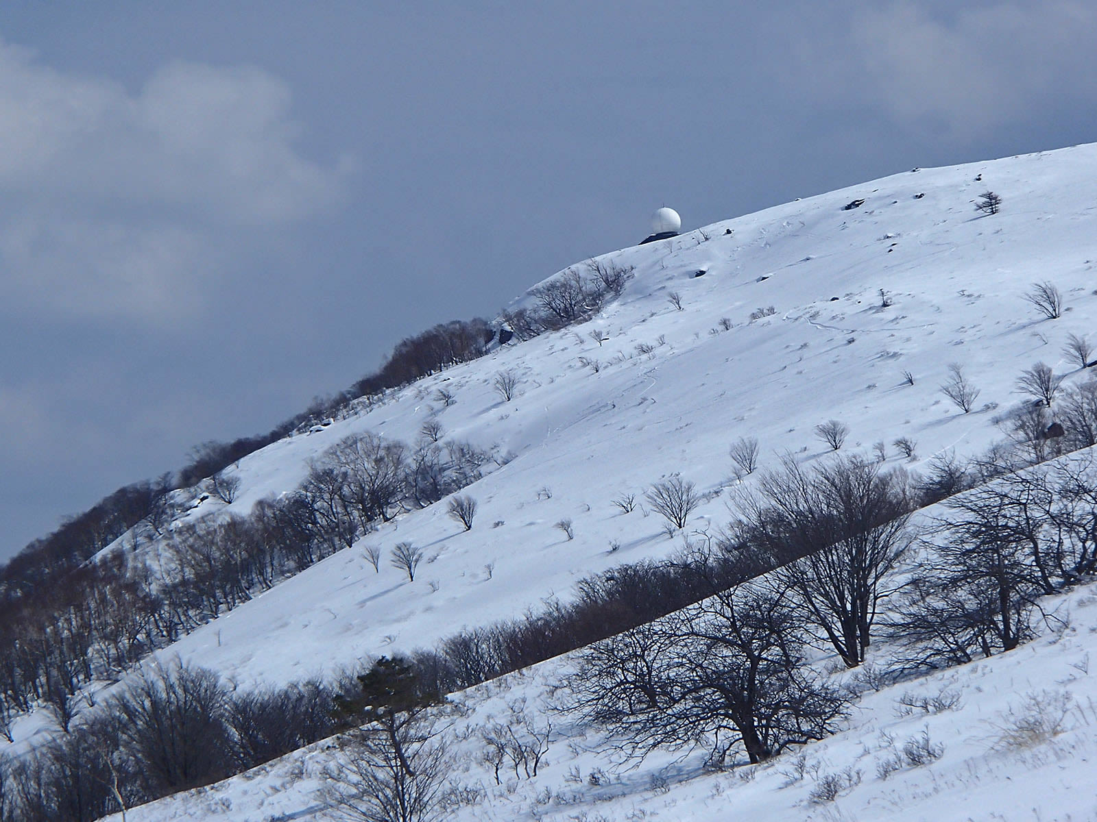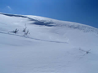 車山北面。前回より20cm以上は積雪が増え、藪がだいぶ埋もれています。