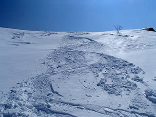 今回も北面中央のラインを滑ってみます。
