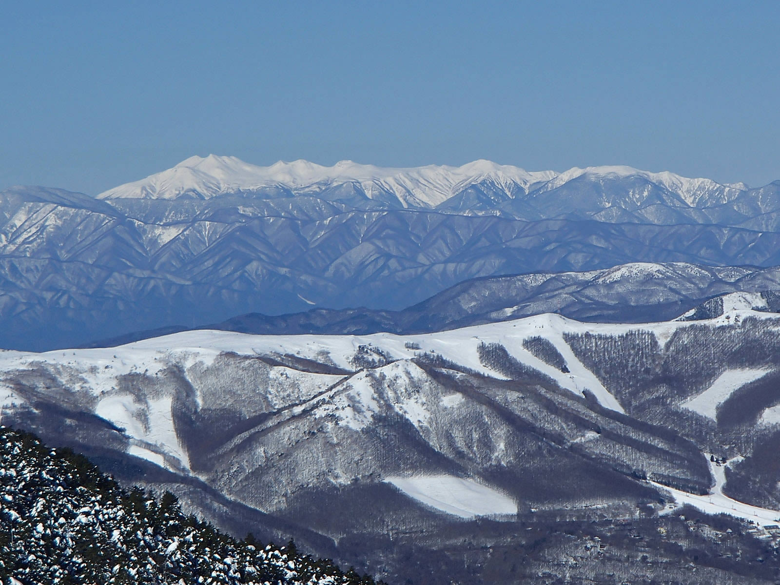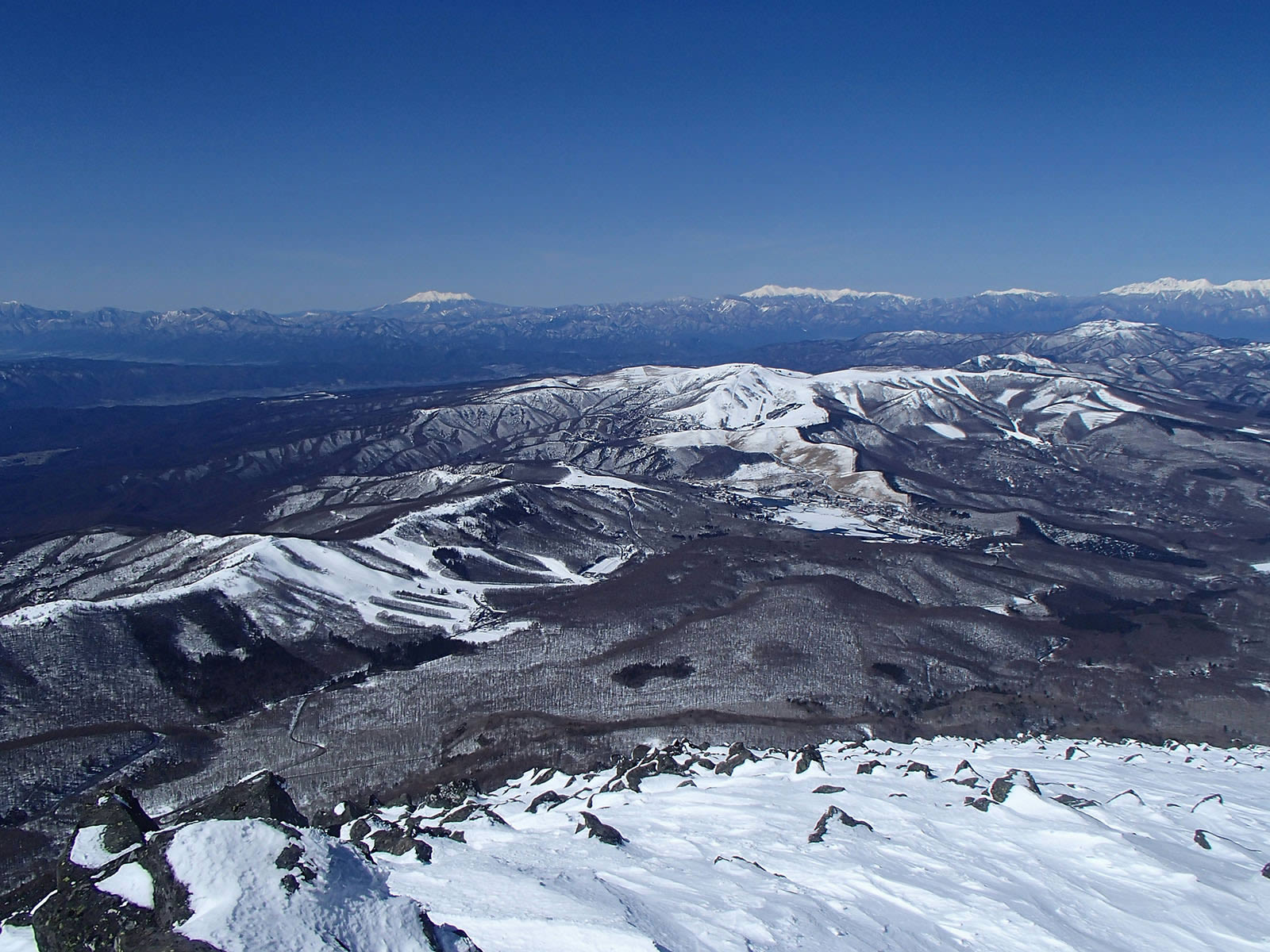 北アルプスや頸城山塊がきれいに見えています。