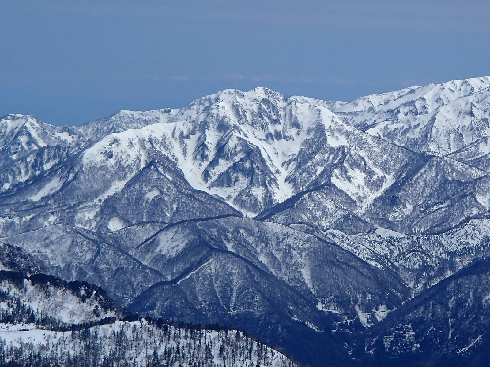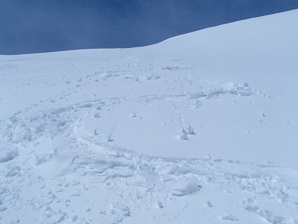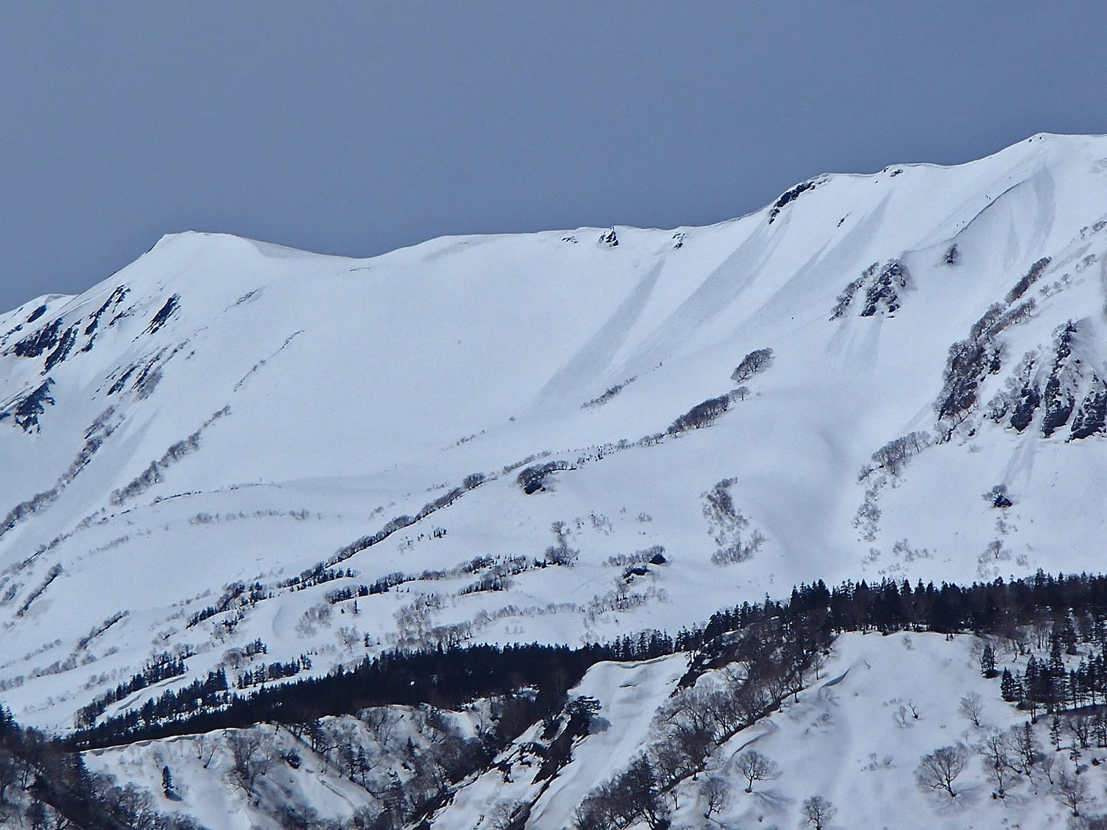 船越の頭の斜面。やはり日射の影響で雪崩れていますね。