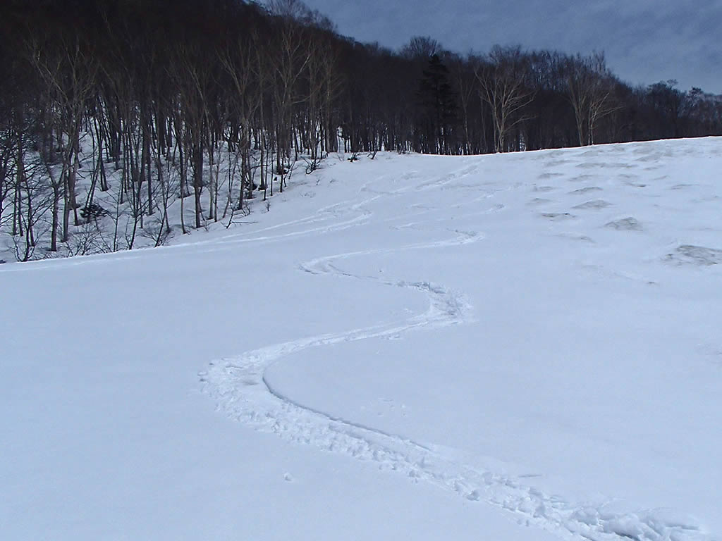 ゲレンデ脇には少しだけ新雪が残っていました。