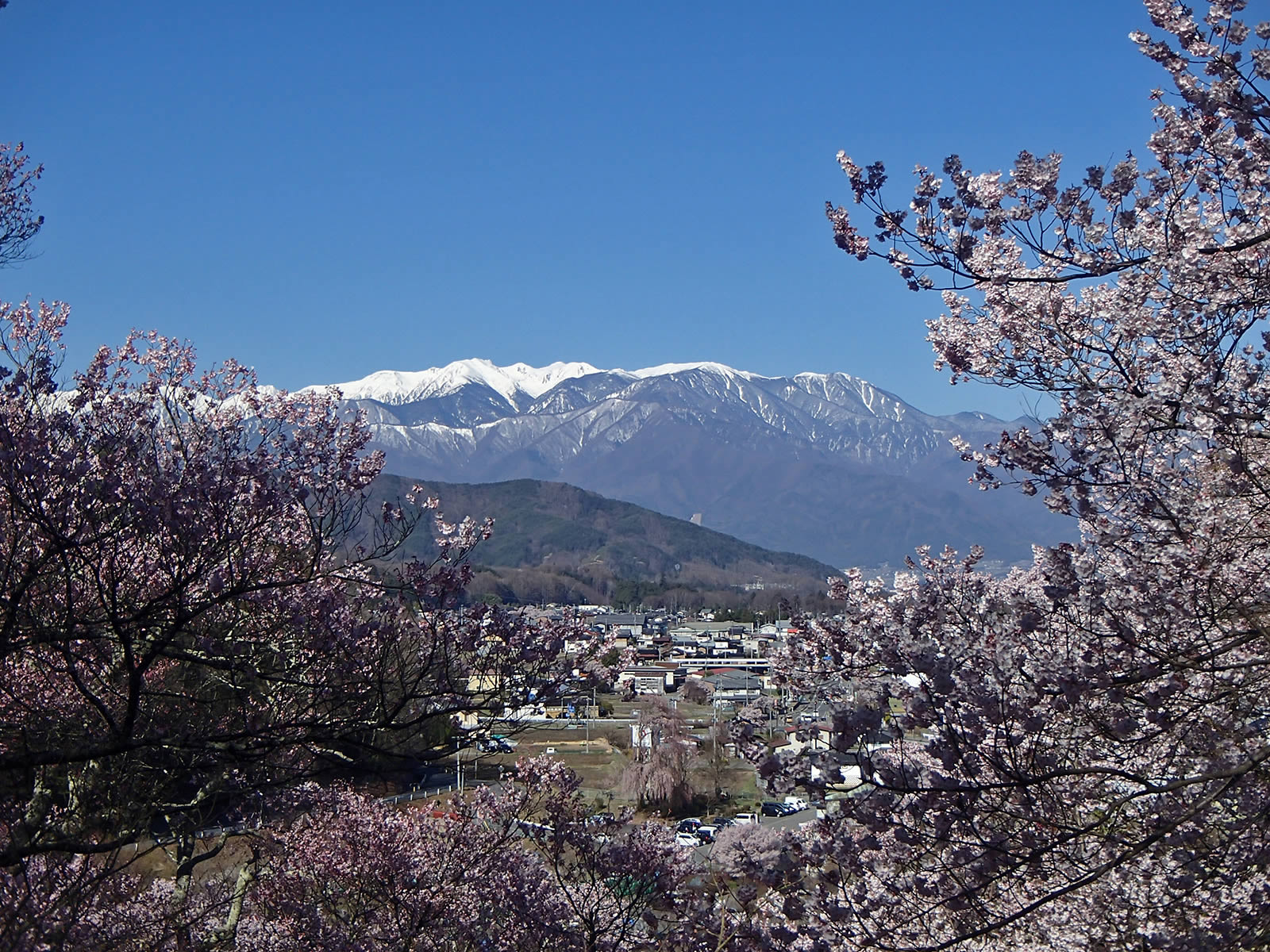 場内に戻ってきて今度は中央アルプスと桜を眺めます。