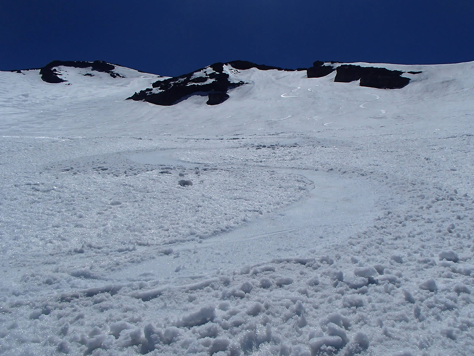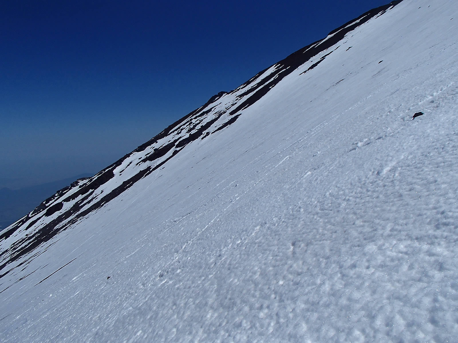 剣ヶ峰をズーム。なんかすごいところを滑り降りた跡があります(^^;。