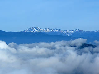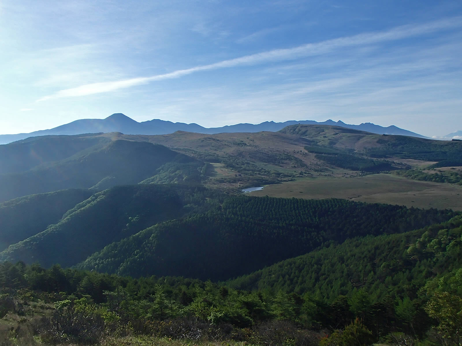 赤岳、横岳、硫黄岳。手前に車山。車山湿原のレンゲツツジはもう少し先っぽいです。