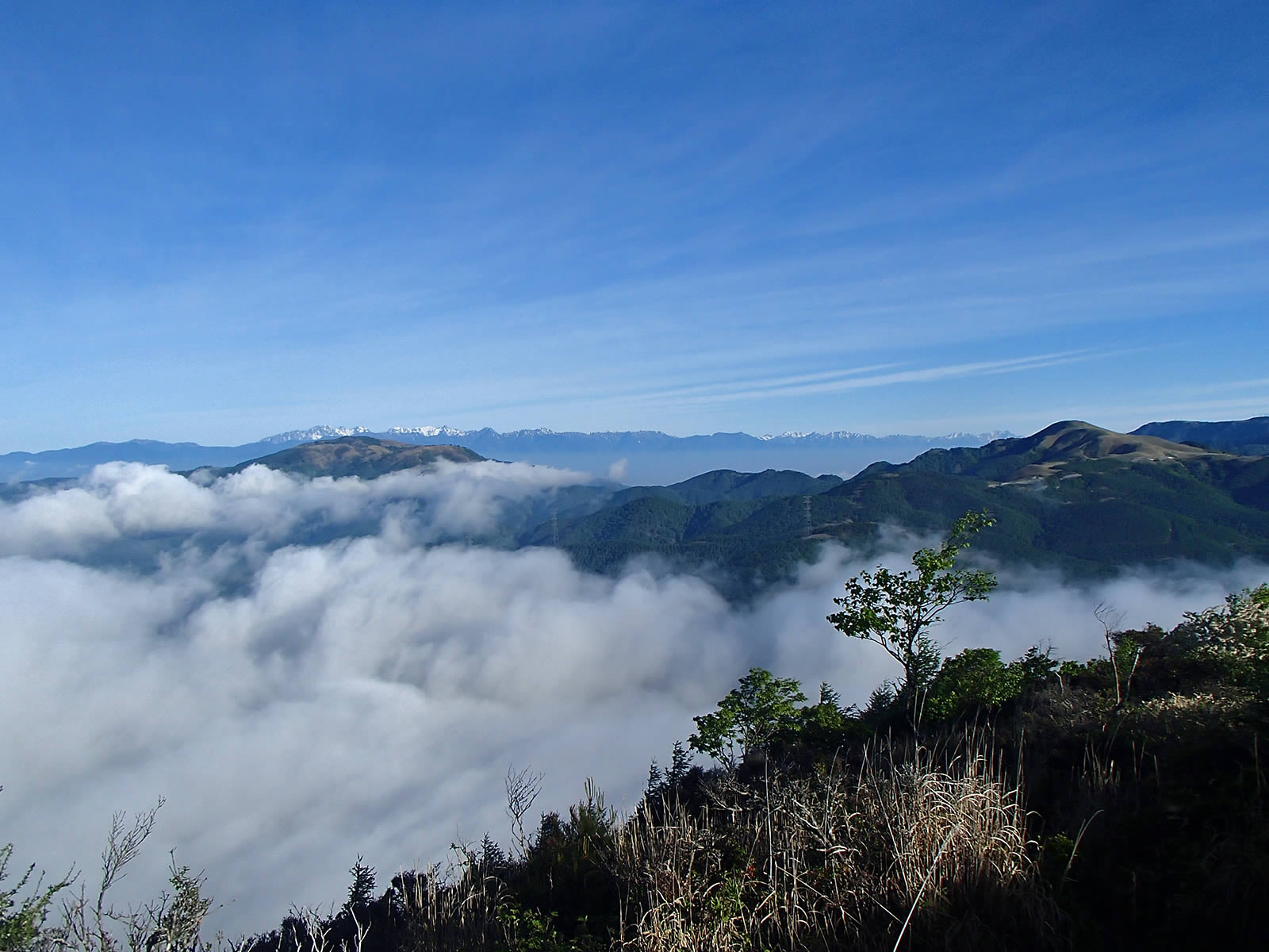 6時11時、鷲ヶ峰山頂に到着。大展望を楽しみながら朝食とします。
