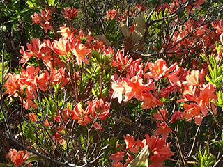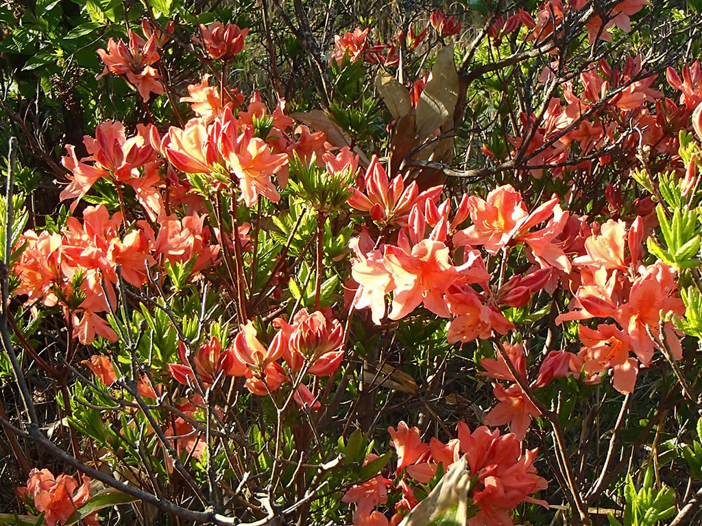 咲き始めのレンゲツツジ。全体的にレンゲツツジ、山ツツジともにつぼみが多く、咲き始めという感じです。