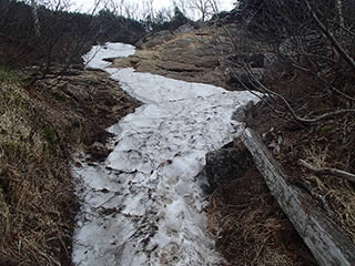 残雪が所々に出てきます。緩んでいるのとステップがありますので、滑り止め無しでも問題ありませんでした。
