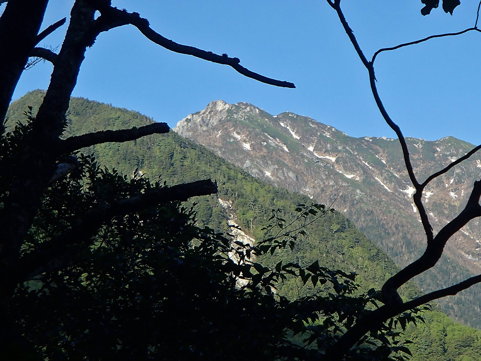 木の間から見える甲斐駒方面。まだ今日は快晴だと思っていました(^^;。