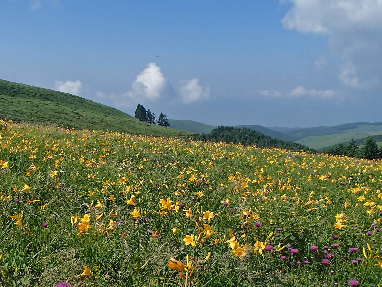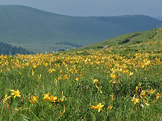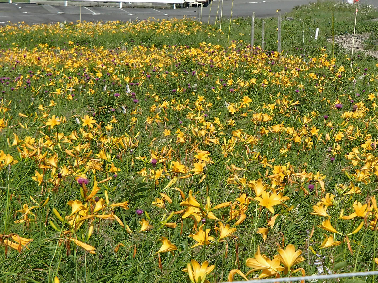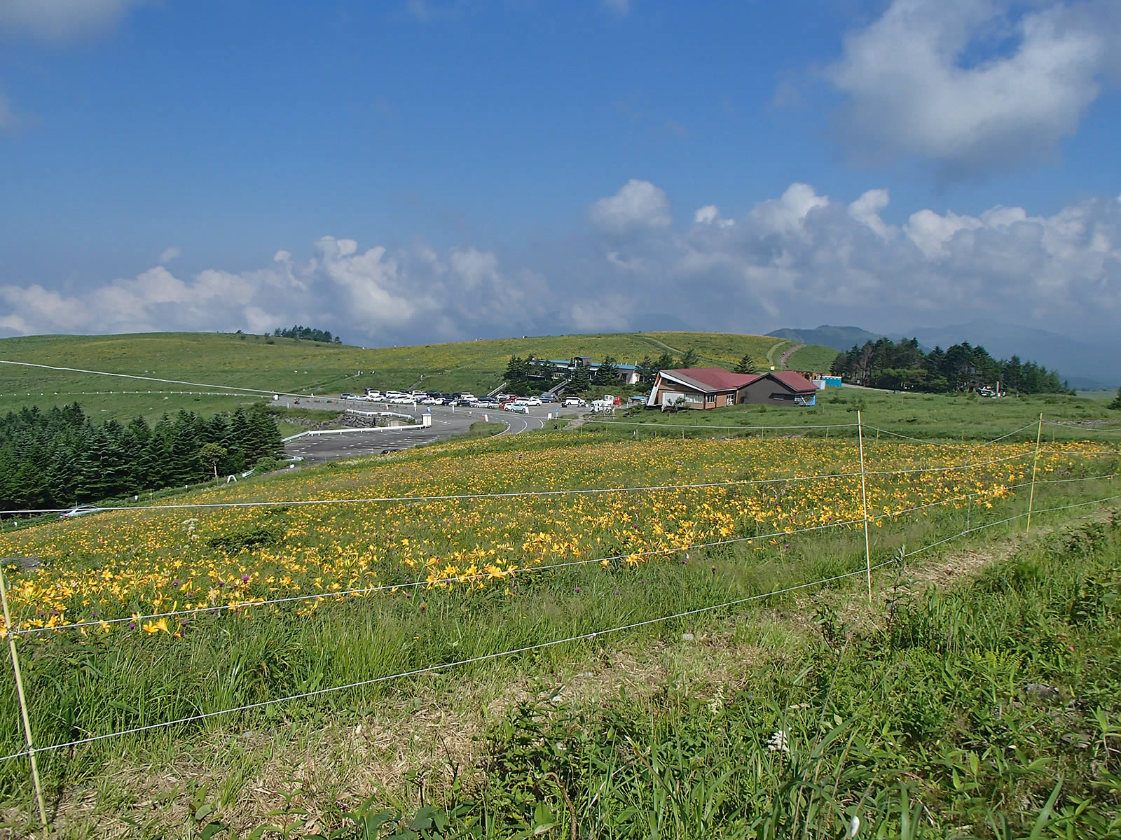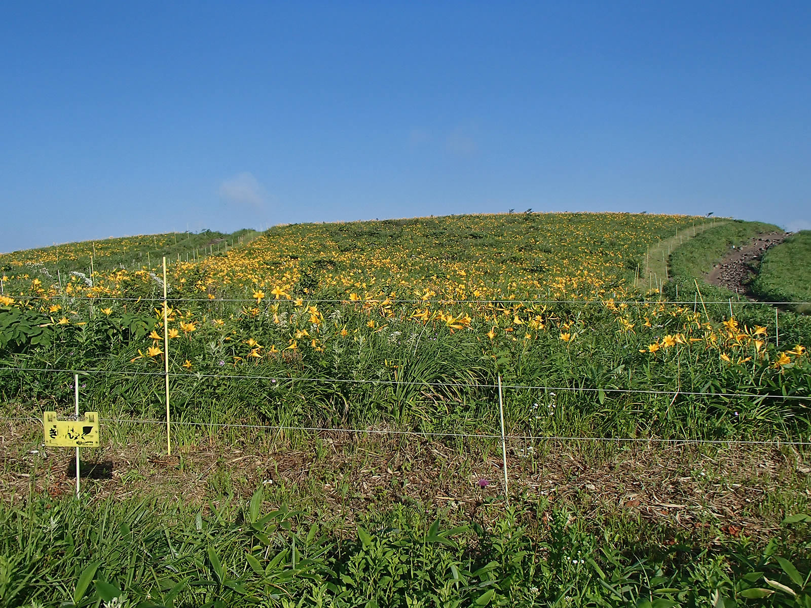 車山側のニッコウキスゲ群生地はちょうど見頃、ピークです。