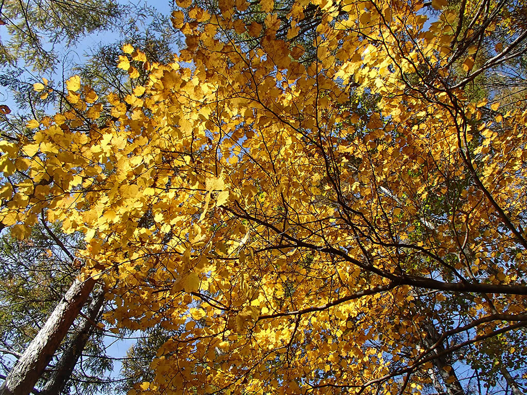 カラマツも徐々に黄金色に。