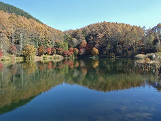 快晴が連日続いていますので、仕事の合間にお昼を持って急いで近くのいずみ湖、大見山の紅葉を見に出かけて来ました。