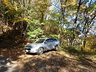 矢立石登山口の駐車場は時間的に一杯だと思い、3つ手前のカーブの路肩が広かったので、ここに駐めました。